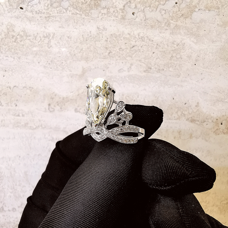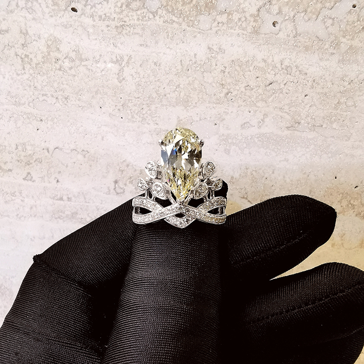 主钻3.012克拉 亮淡彩黄-SI 梨形明亮式