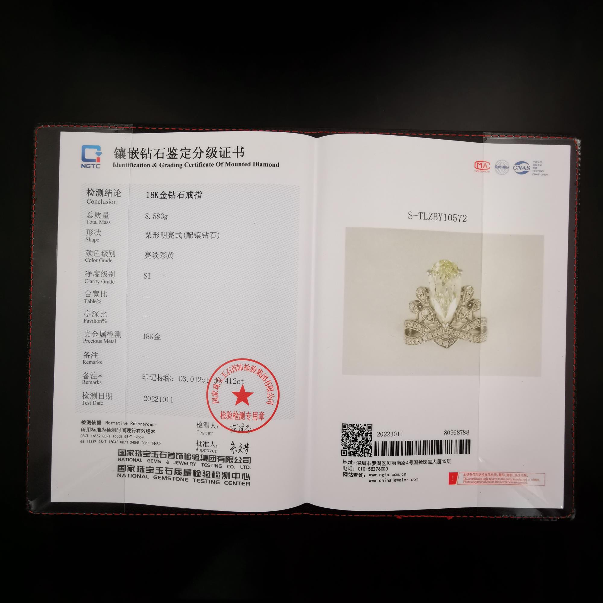 主钻3.012克拉 亮淡彩黄-SI 梨形明亮式 特价28W国检NGTC370572