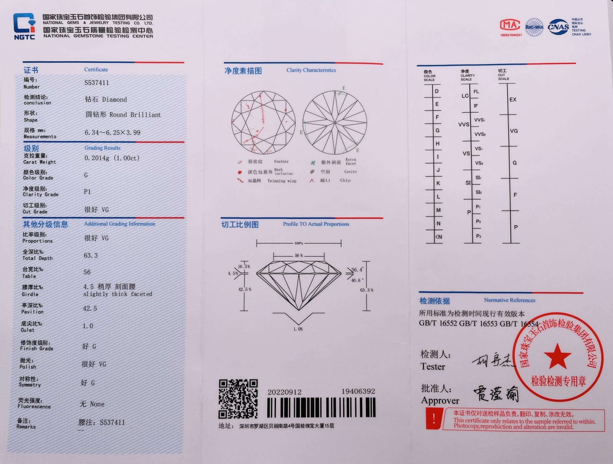国检NGTC537411证书号