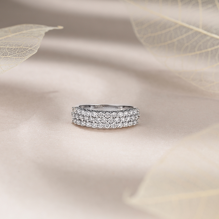 群镶三排钻戒18K金2.75克 钻石0.875克拉