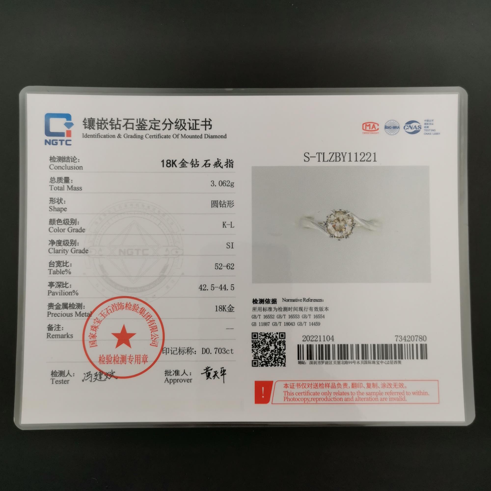 主钻70.3分KL色SI净度圆形钻 特价1.65W国检NGTC700721