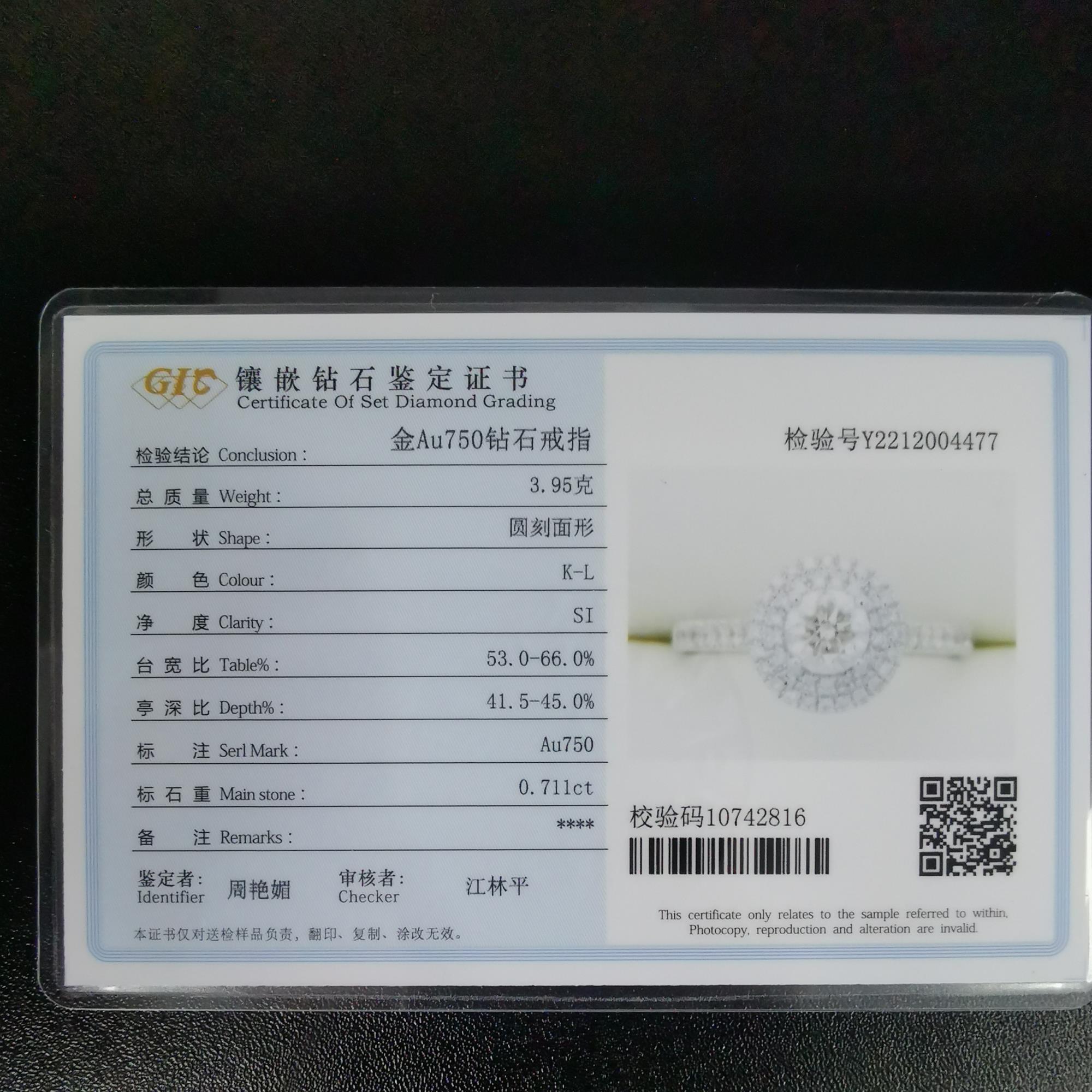 主钻71.1分KL色SI净度圆形钻 特价1.75W中国地质大学706077