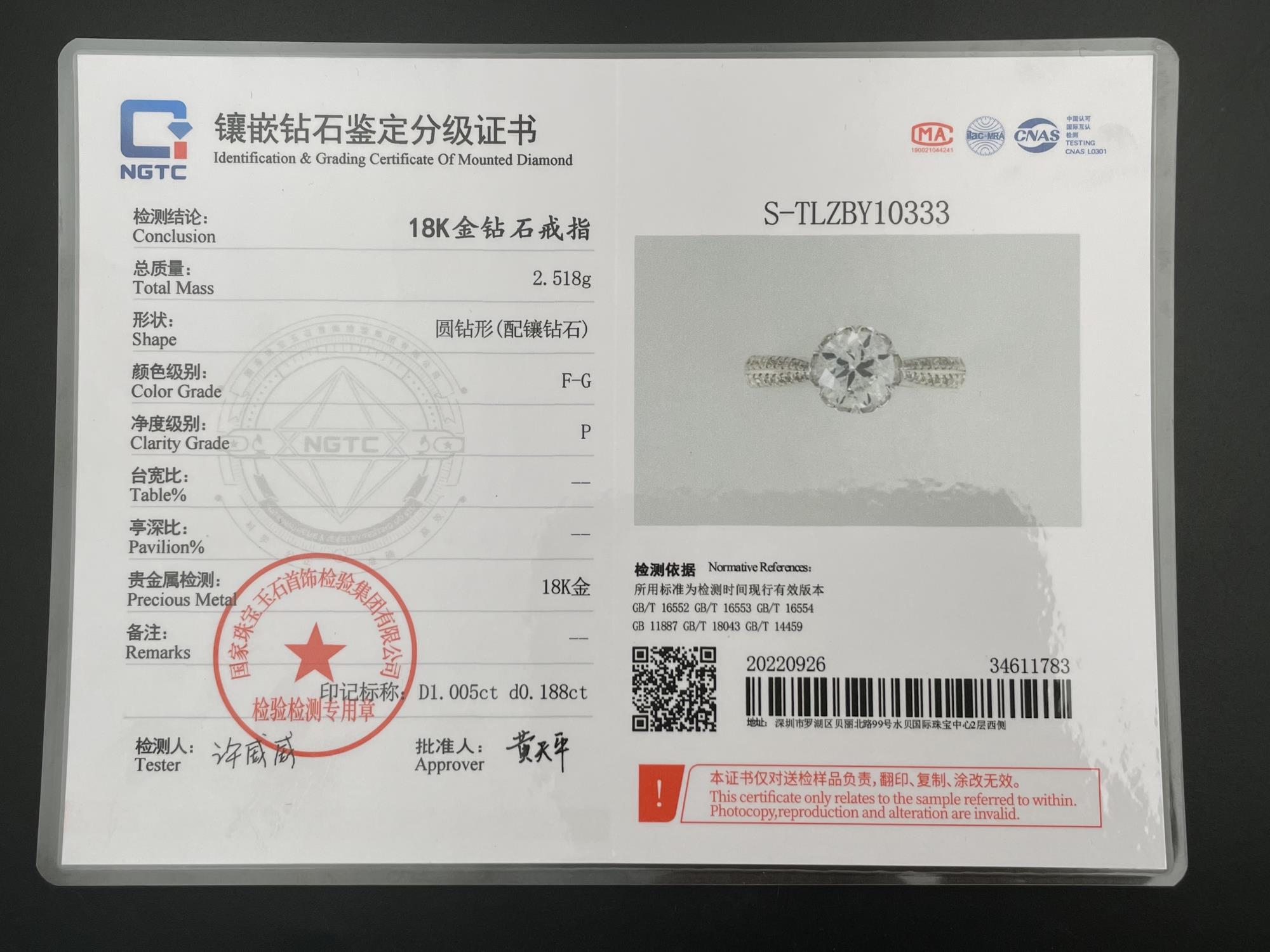 主钻1.005克拉FG色P净度圆形钻 特价4.5W国检NGTC630333