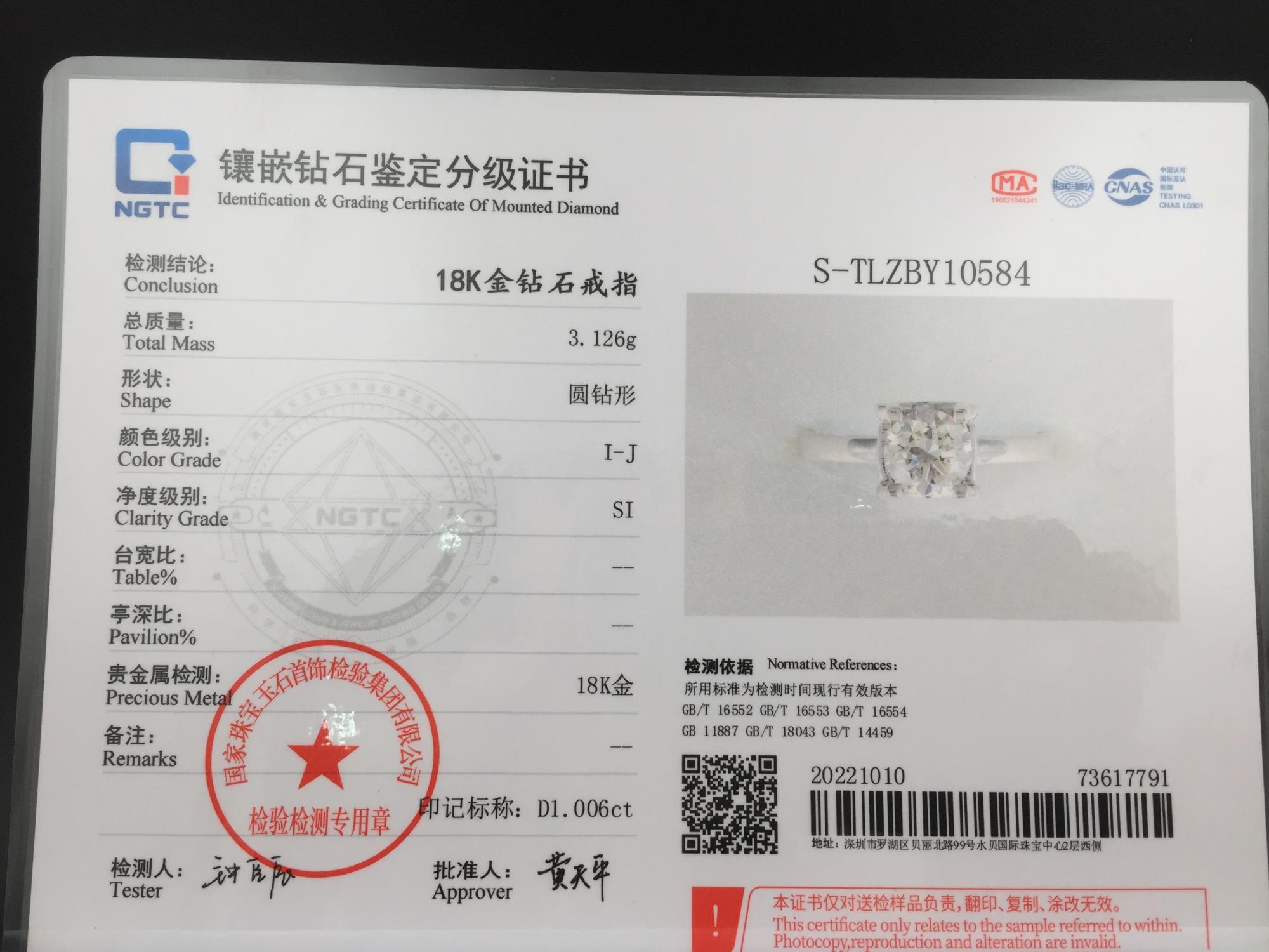 主钻1.006克拉IJ色SI净度圆形钻 特价3.67W国检NGTC110584