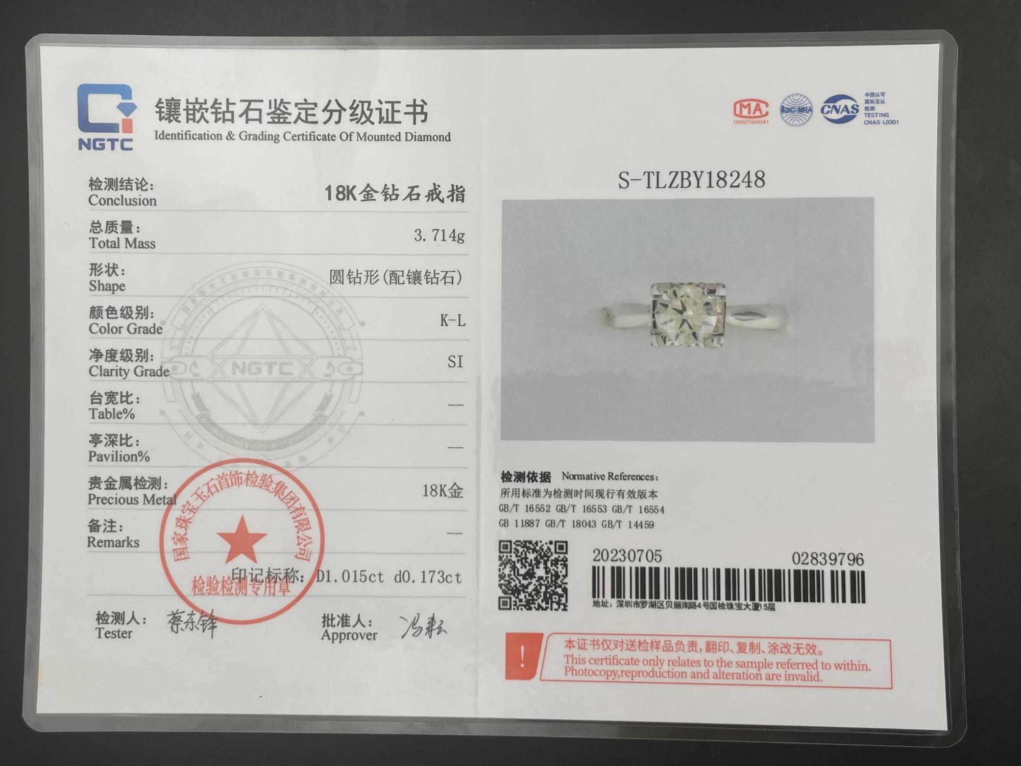 主钻1.015克拉KL色SI净度圆形钻 特价3.34W国检NGTC508248