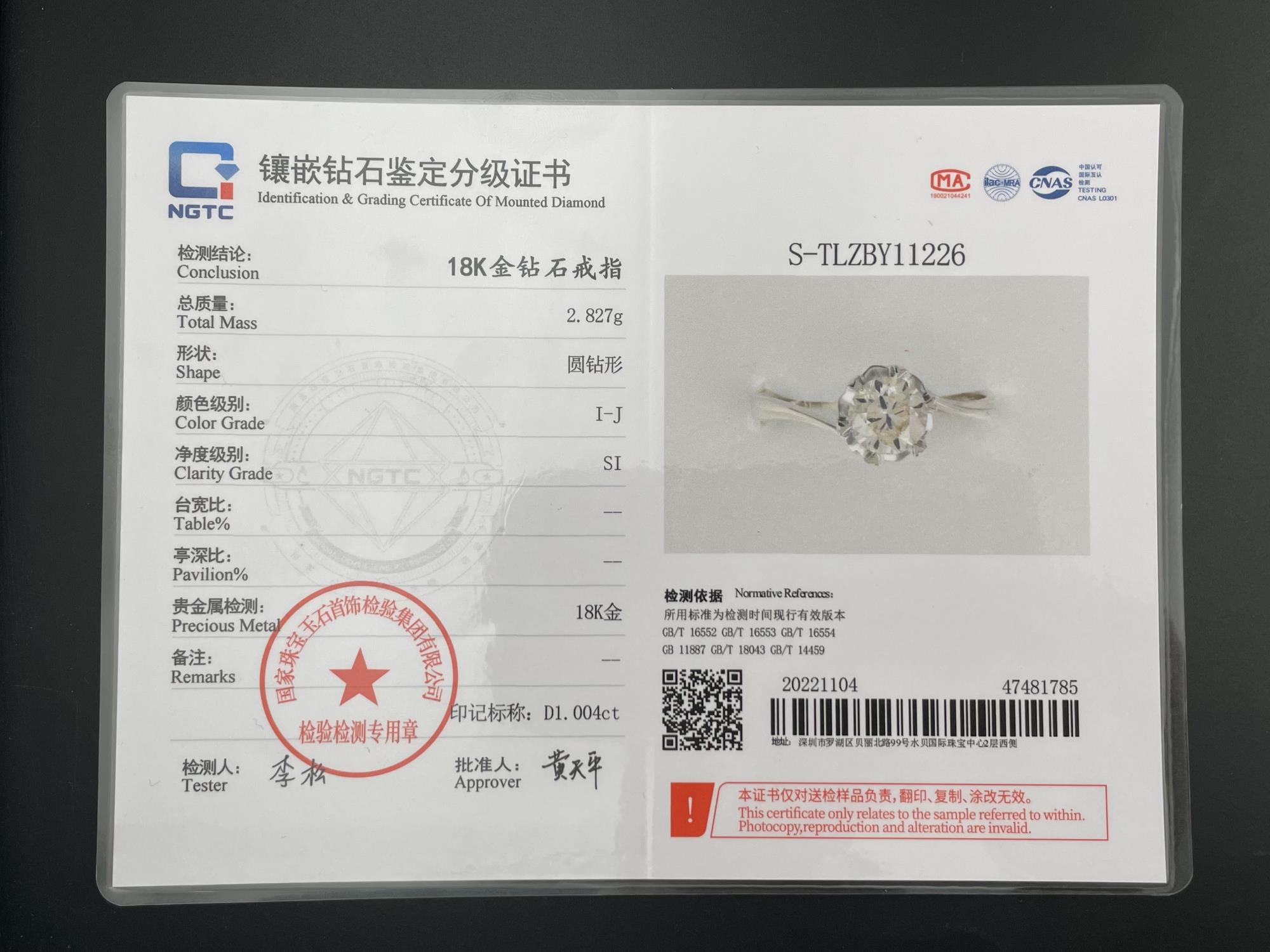 主钻1.004克拉IJ色SI净度圆形钻 特价3.67W国检NGTC071226