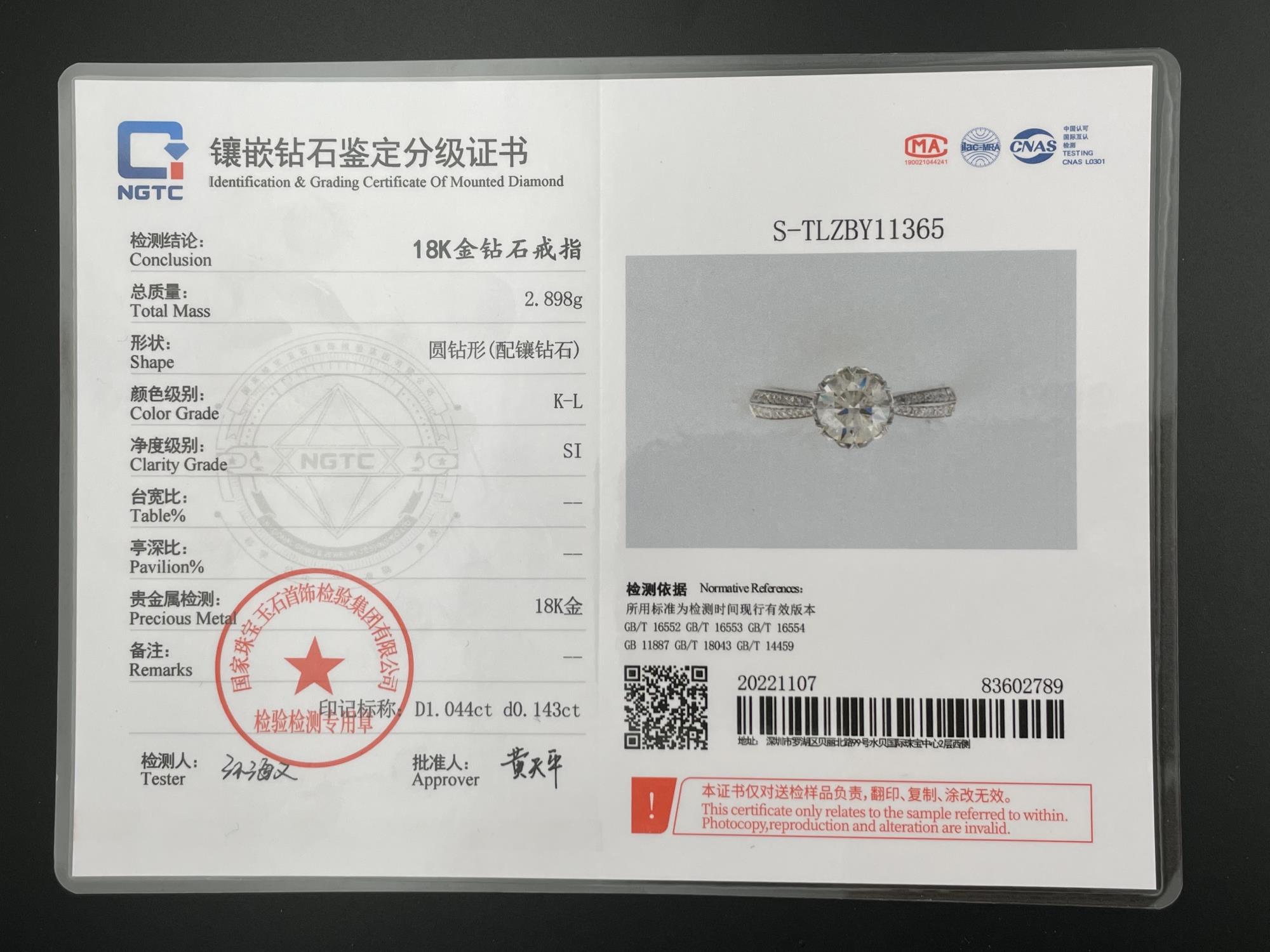 主钻1.044克拉KL色SI净度圆形钻 特价3.67W国检NGTC631365