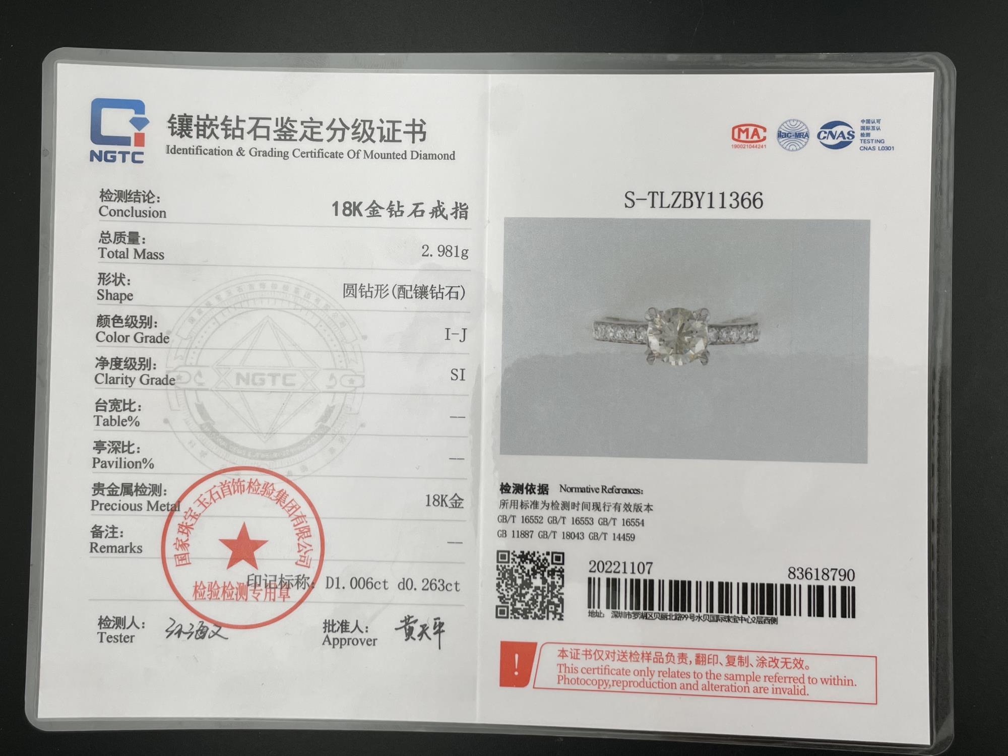 主钻1.006克拉IJ色SI净度圆形钻 特价4W国检NGTC511366