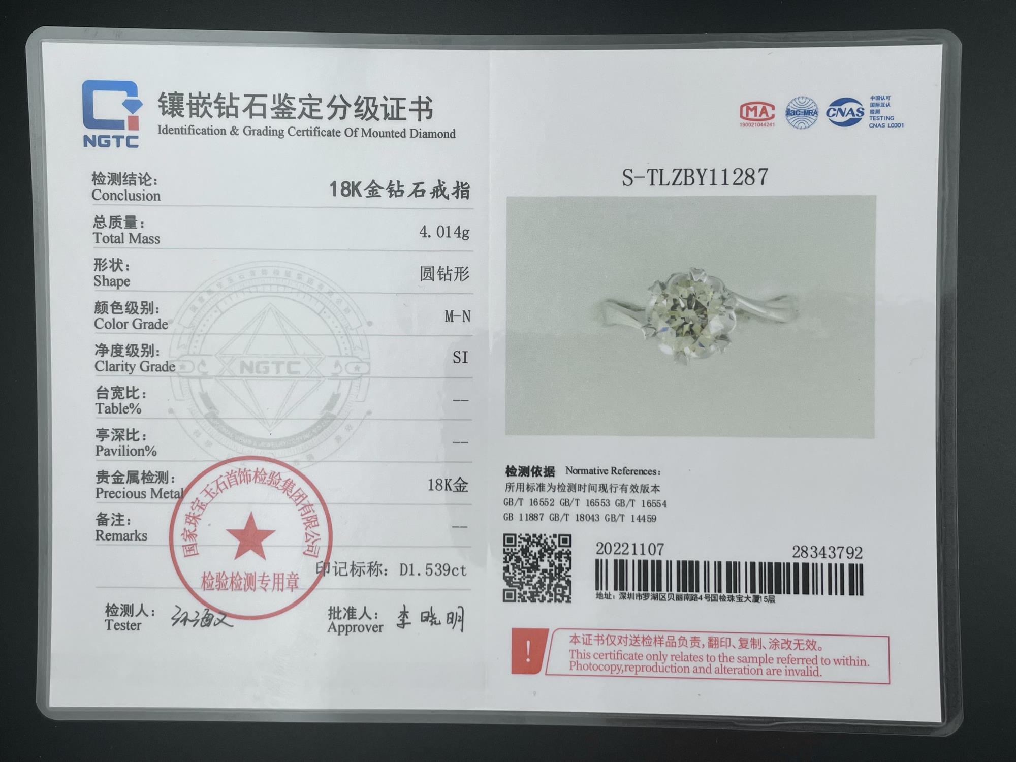 主钻1.539克拉MN色SI净度圆形钻 特价5.34W国检NGTC071287