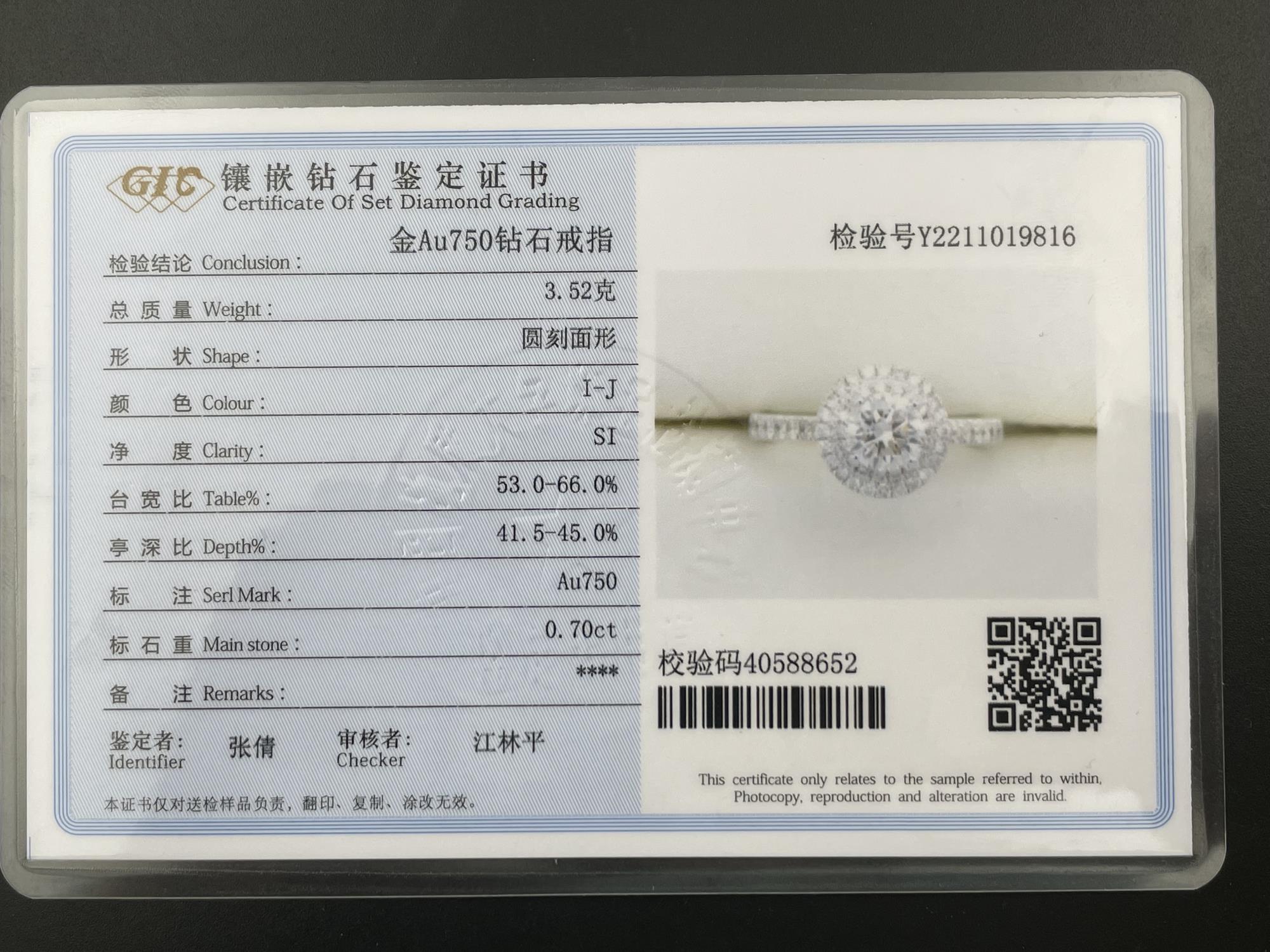 主钻70分IJ色SI净度圆形钻 特价2.09W中国地质大学706016