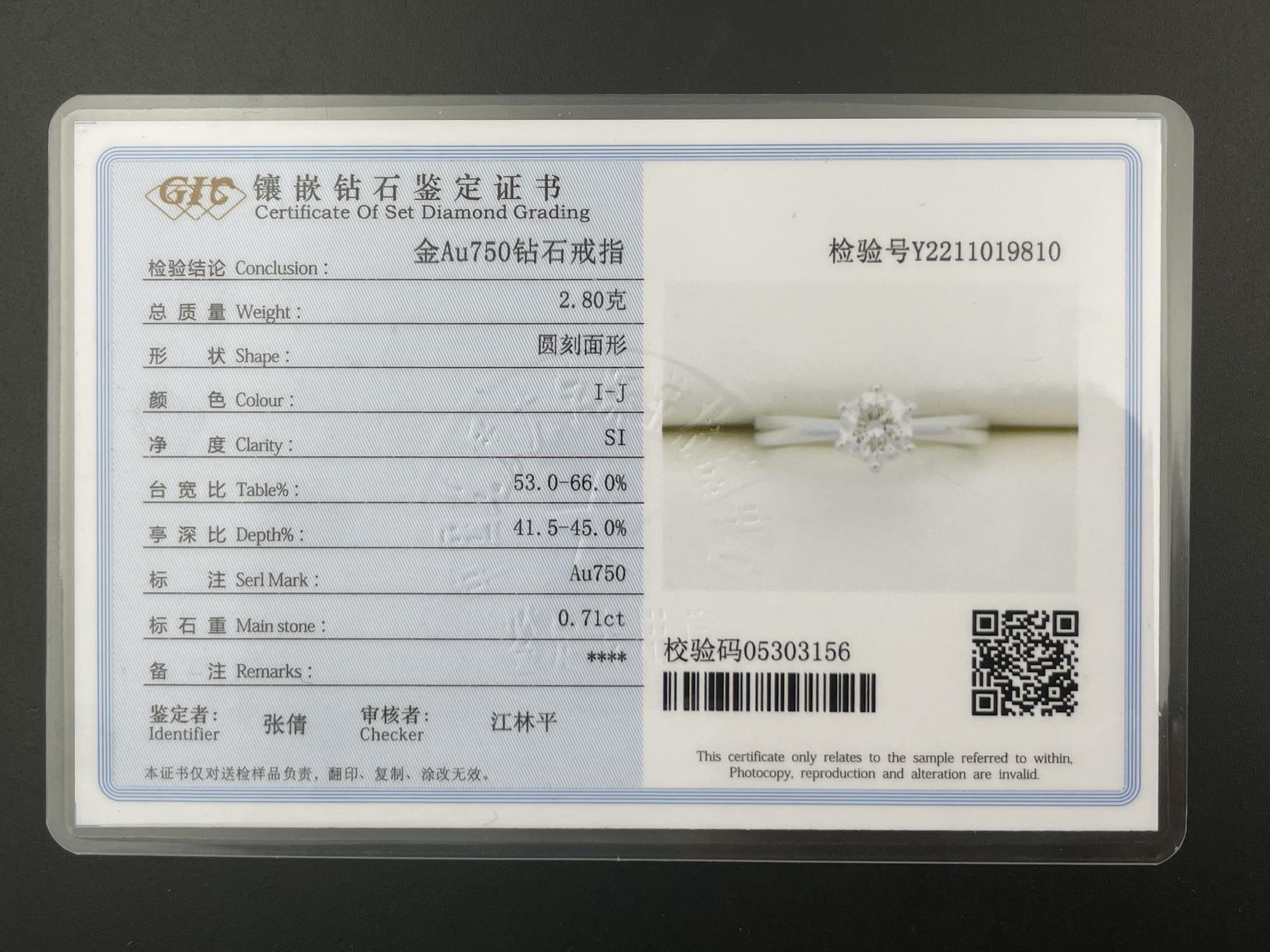 主钻71分IJ色SI净度圆形钻 特价1.84W中国地质大学700510