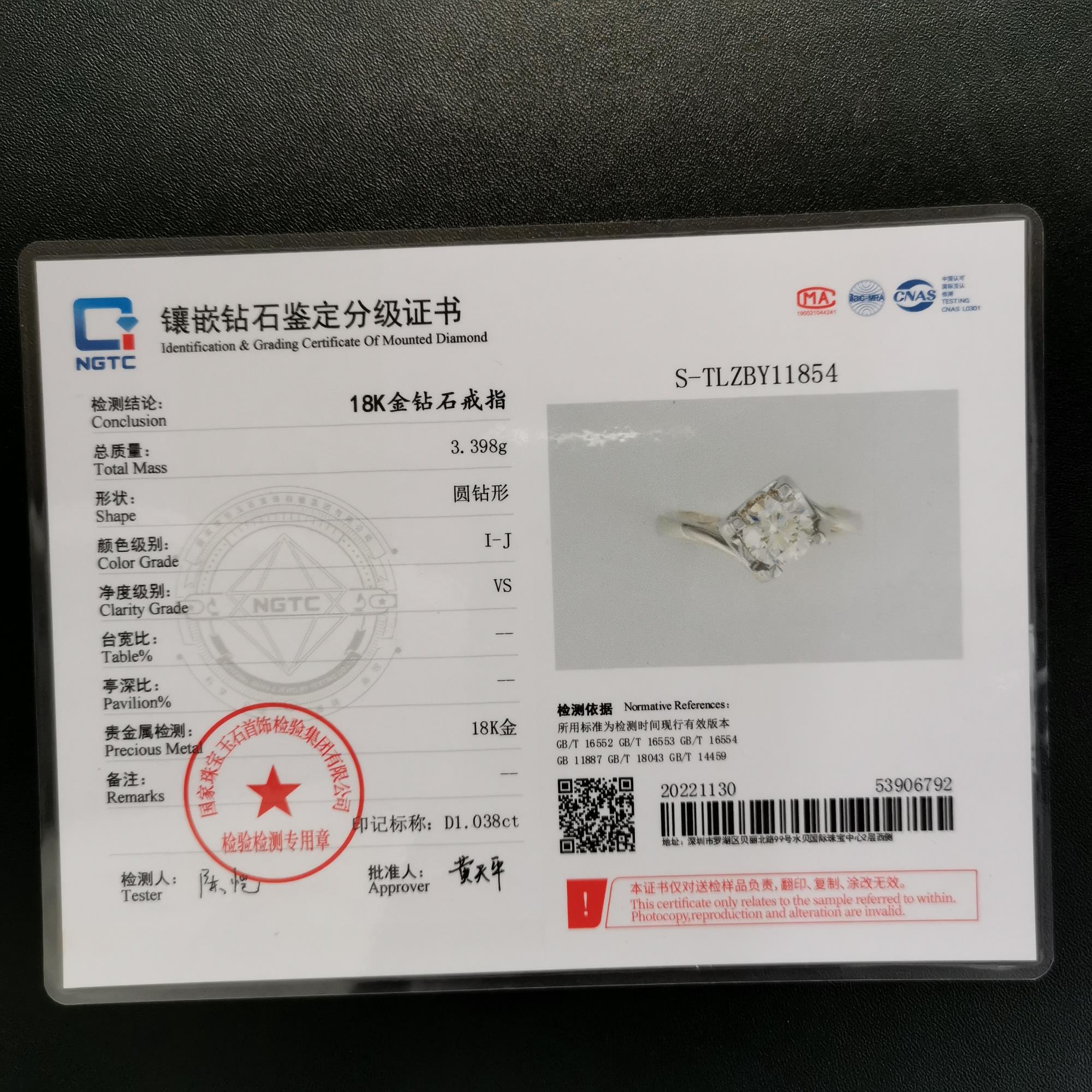 主钻1.038克拉IJ色VS净度圆形钻 特价4.84W国检NGTC031854