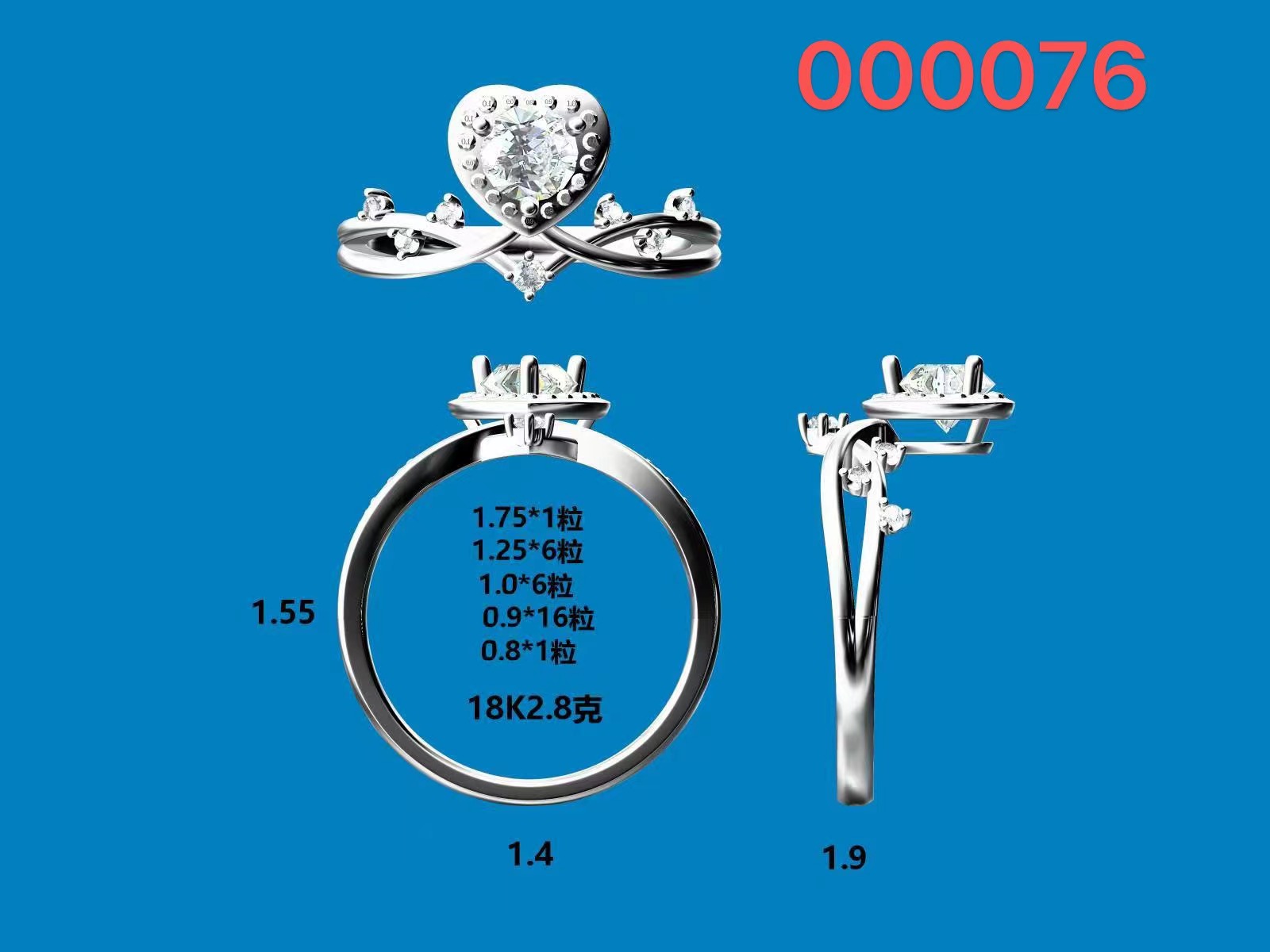 18K金有副钻托