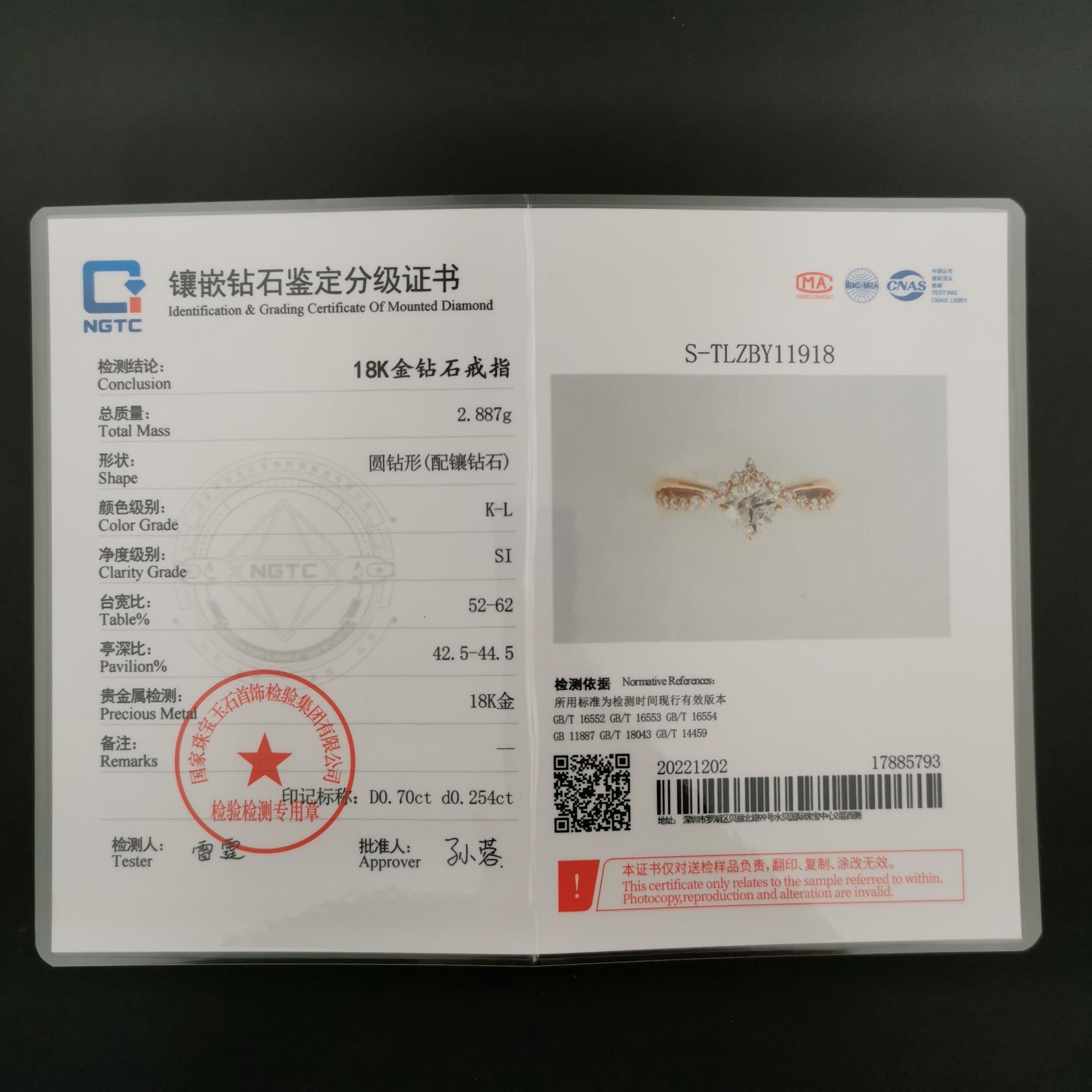 主钻70分KL色SI净度圆形钻 特价1.82W国检NGTC707318