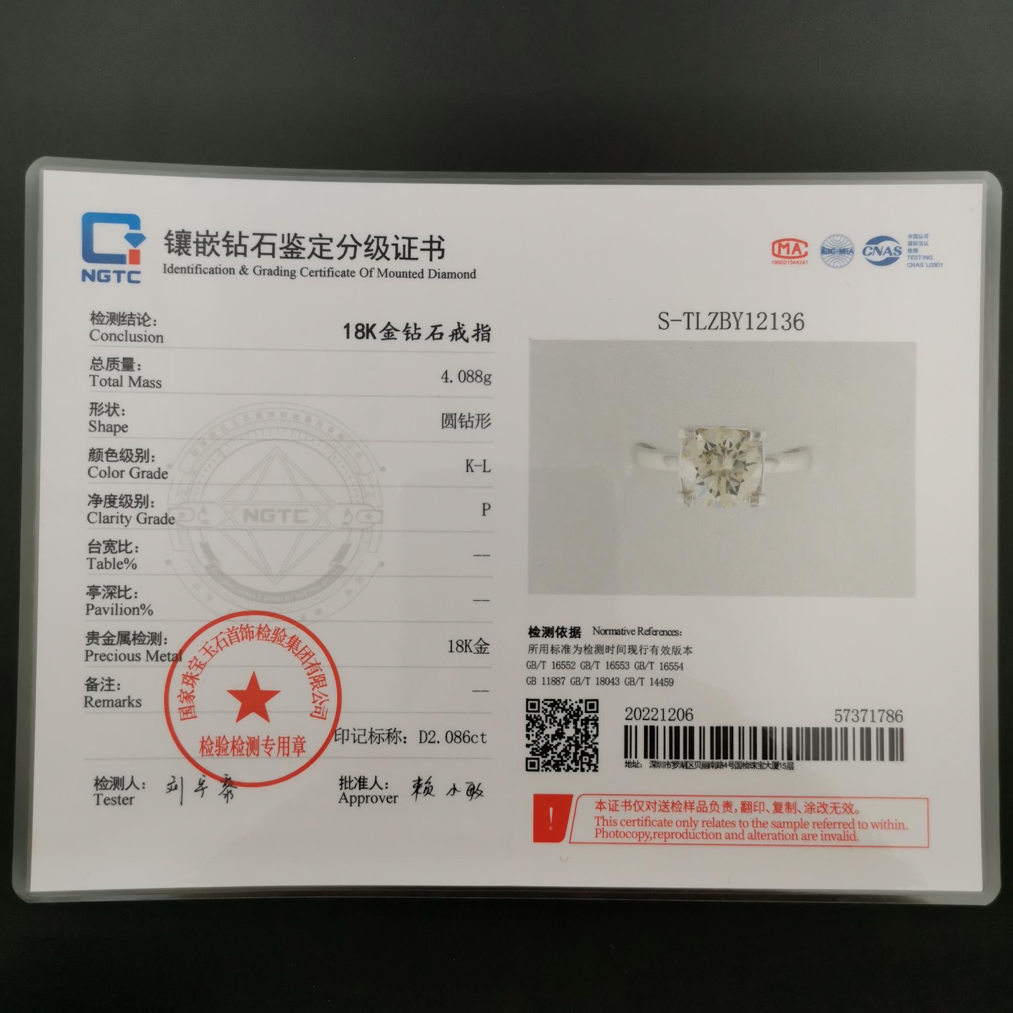 主钻2.086克拉KL色P净度圆形钻 特价9.97W国检NGTC112136
