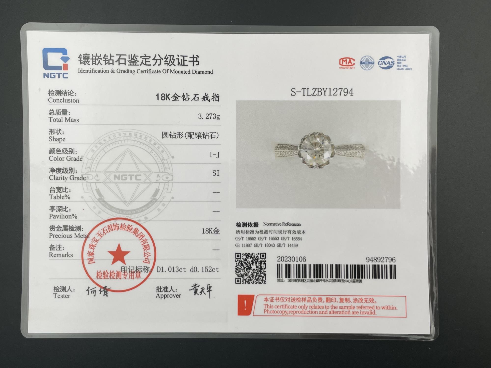 主钻1.013克拉IJ色SI净度圆形钻 特价4.25W国检NGTC632794
