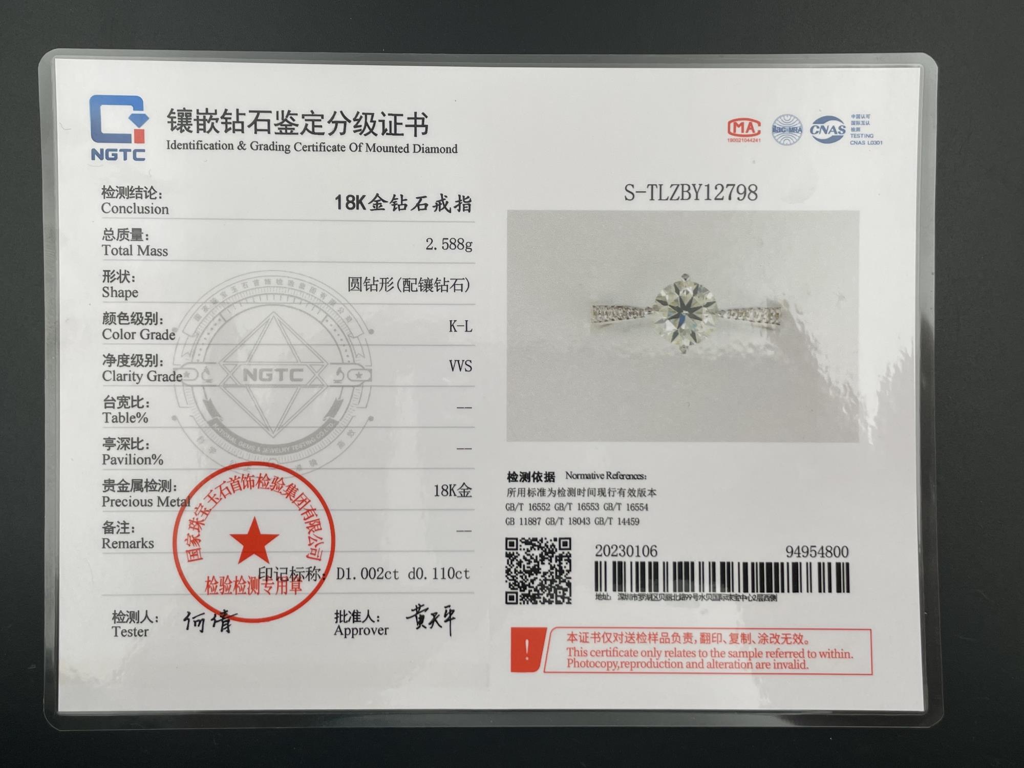 主钻1.002克拉KL色VVS净度圆形钻 特价4.17W国检NGTC592798