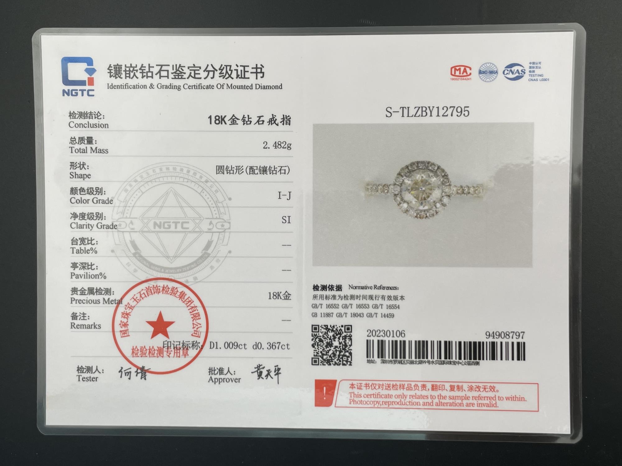 主钻1.009克拉IJ色SI净度圆形钻 特价4.14W国检NGTC582795