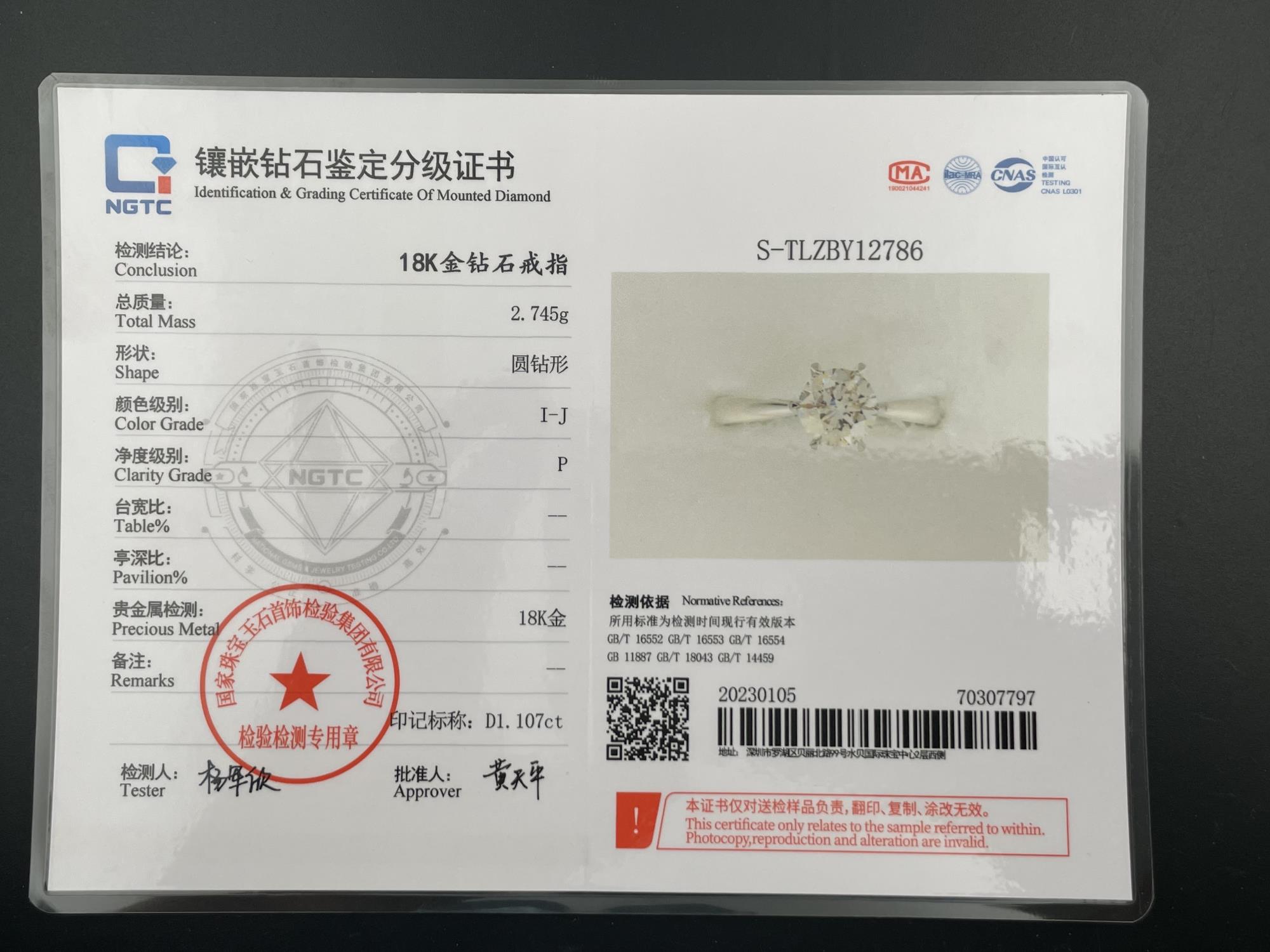 主钻1.107克拉IJ色P净度圆形钻 特价3.8W国检NGTC082786
