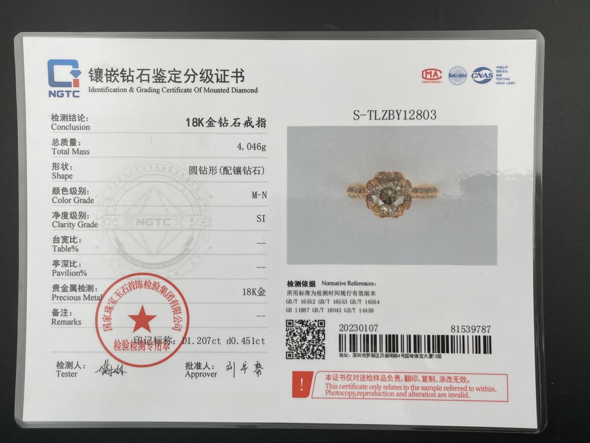 主钻1.207克拉MN色SI净度圆形钻 特价3.17W国检NGTC772803