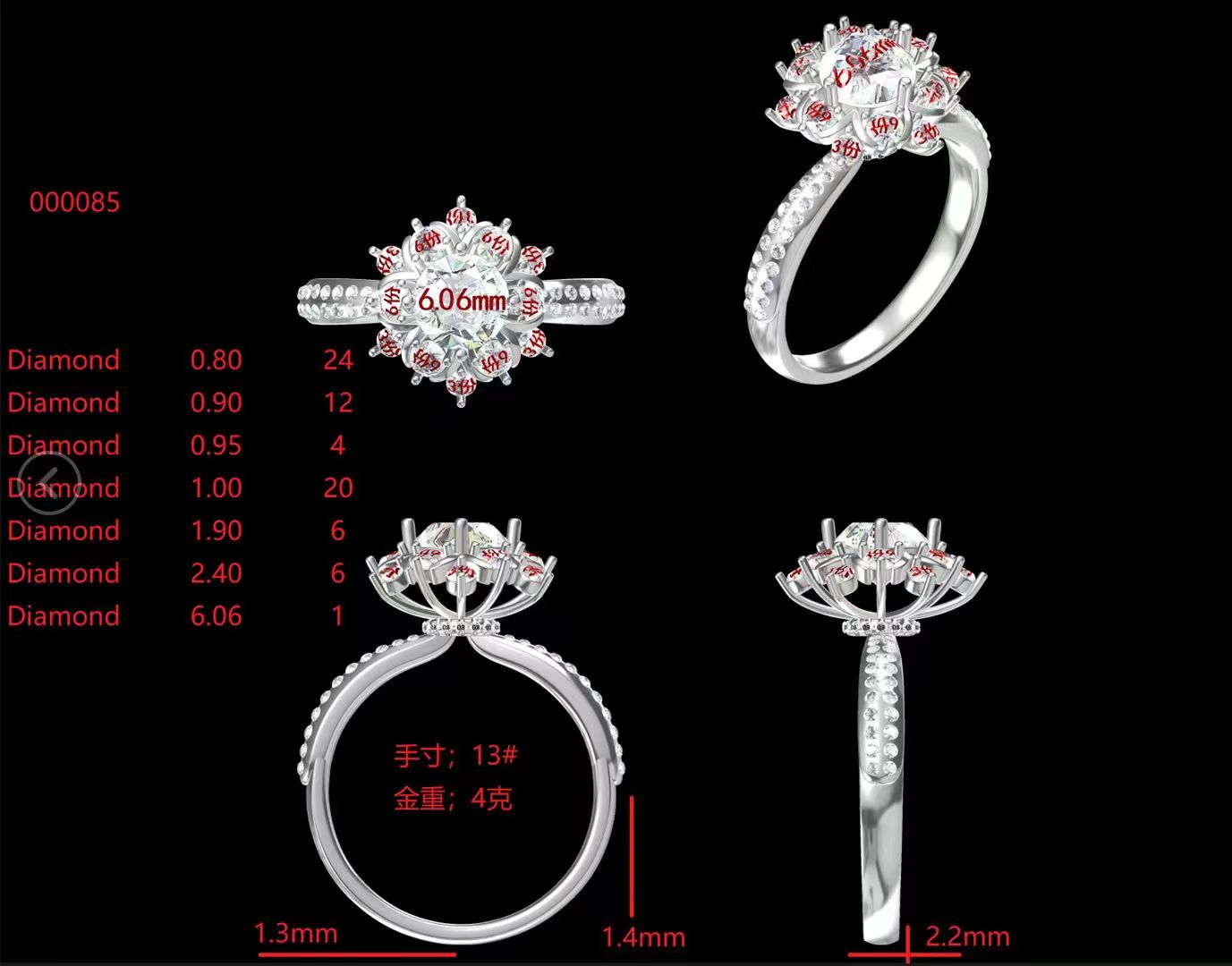 18K金有副钻托