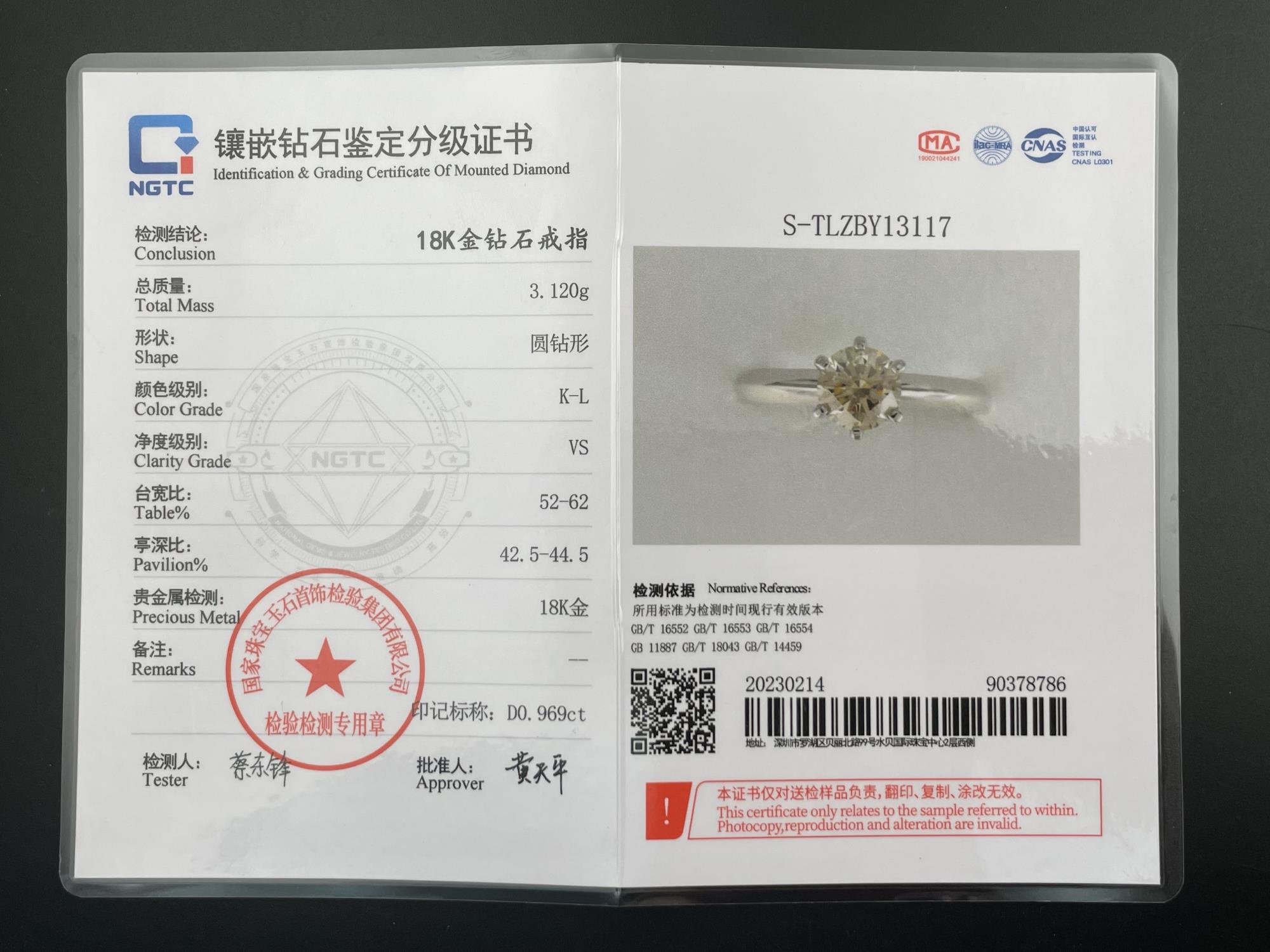 主钻96.9分KL色VS净度圆形钻 特价3.14W国检NGTC900117