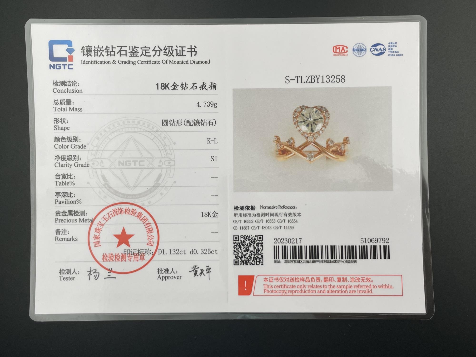 主钻1.132克拉KL色SI净度圆形钻 特价4.17W国检NGTC763258