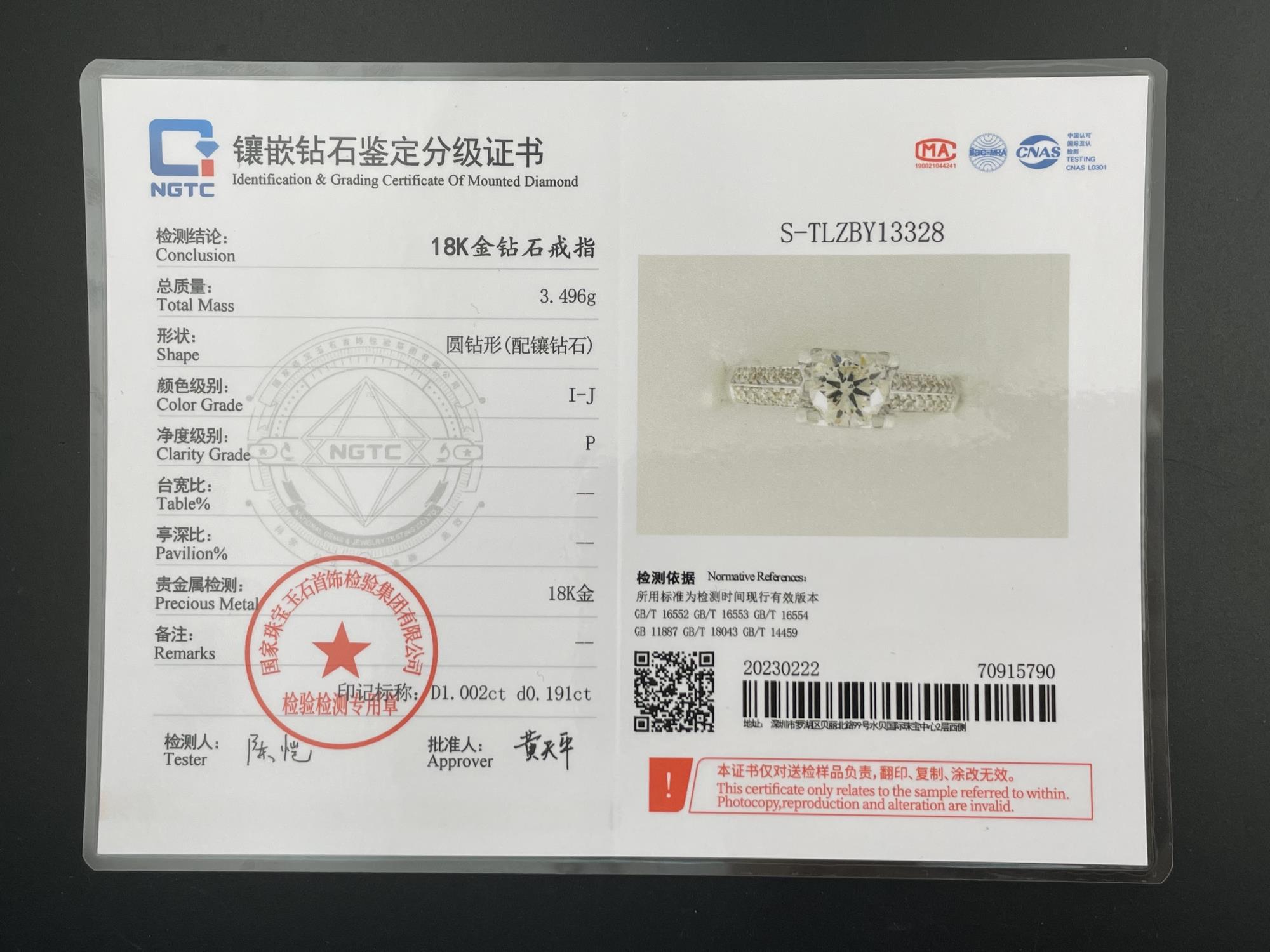 主钻1.002克拉IJ色P净度圆形钻 特价3.82W国检NGTC543328