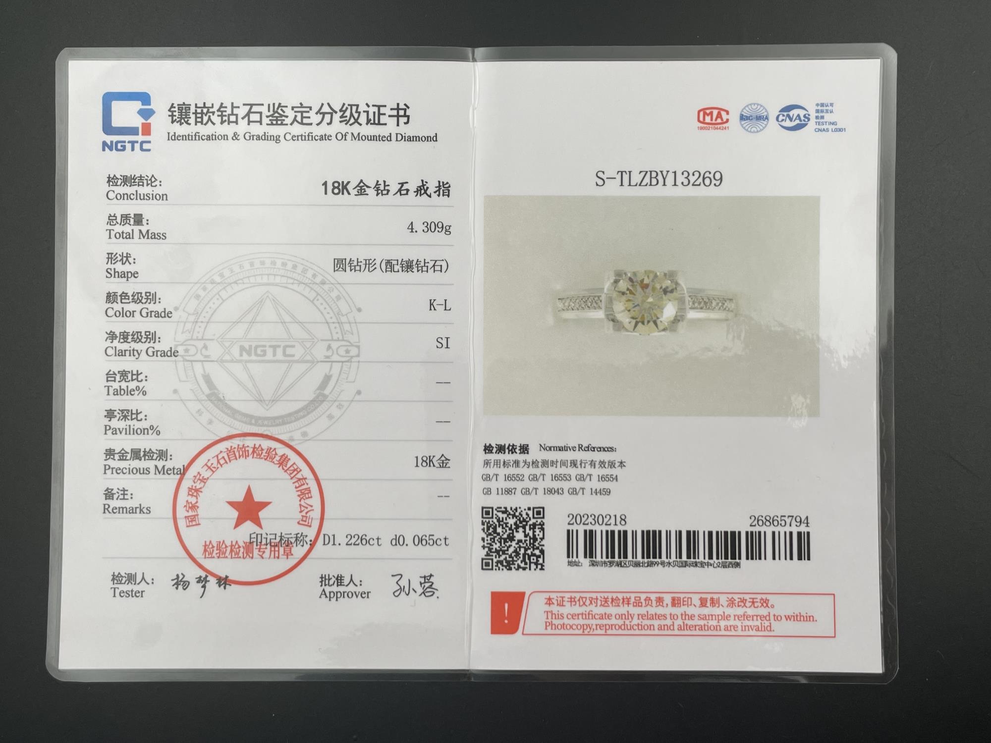 主钻1.226克拉KL色SI净度圆形钻 特价4.5W国检NGTC623269