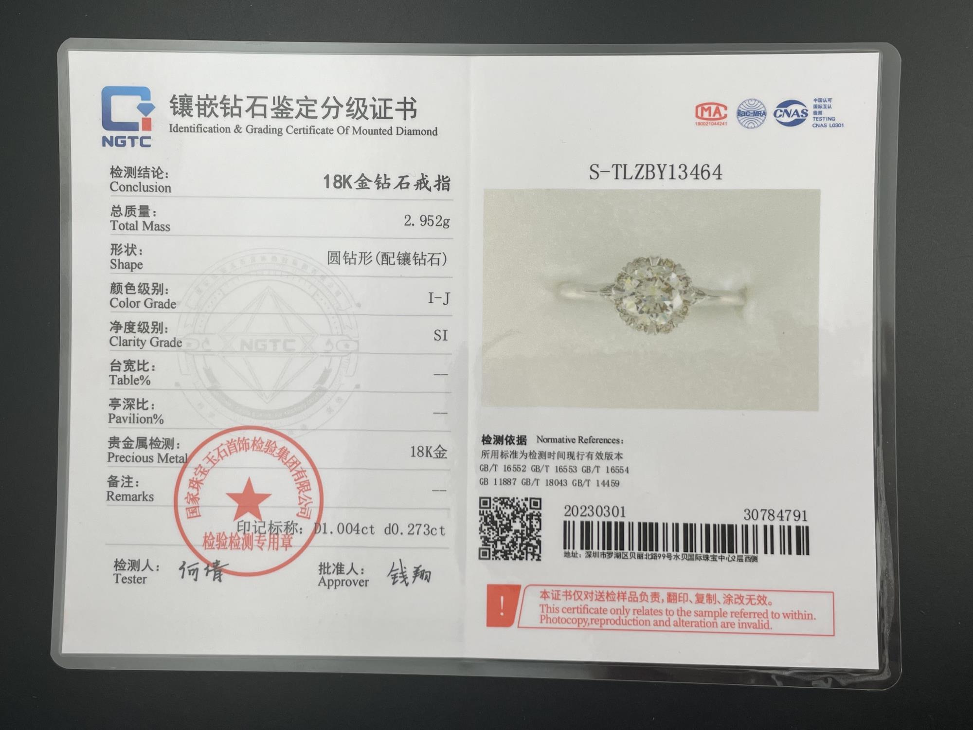 主钻1.004克拉IJ色SI净度圆形钻 特价3.97W国检NGTC843464