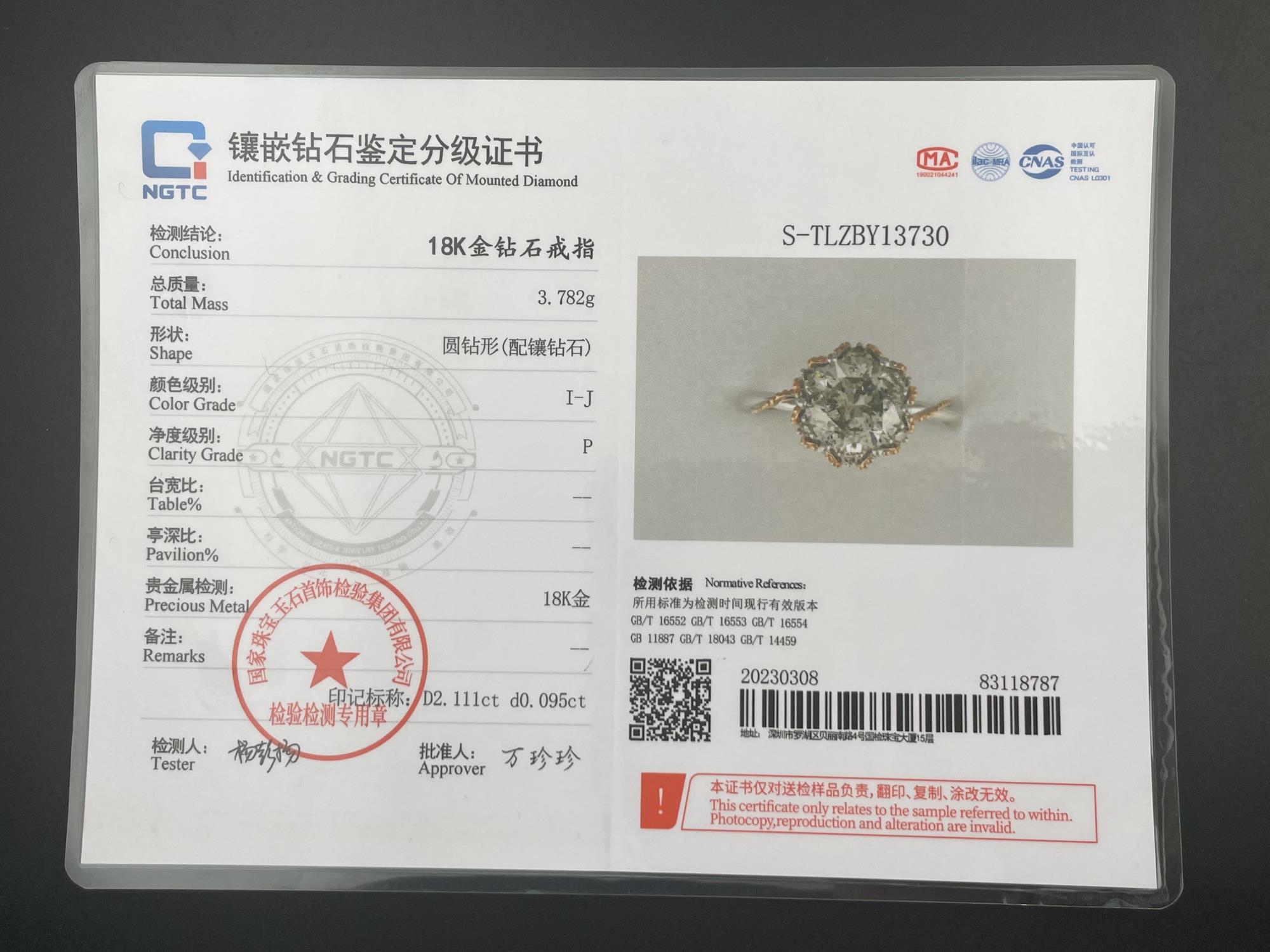 主钻2.111克拉IJ色P净度圆形钻 特价6.47W国检NGTC863730