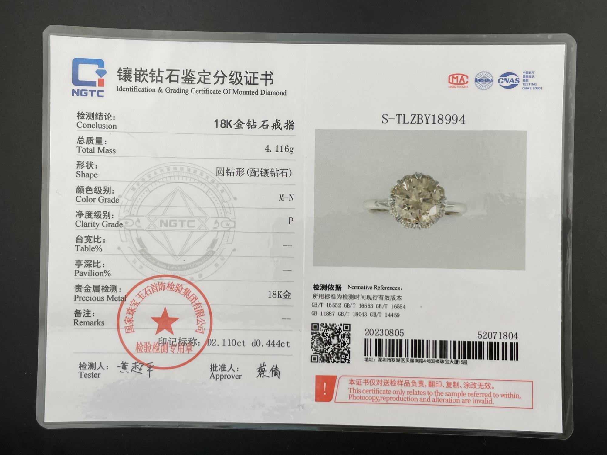 主钻2.110克拉MN色P净度圆形钻 特价6W国检NGTC848994