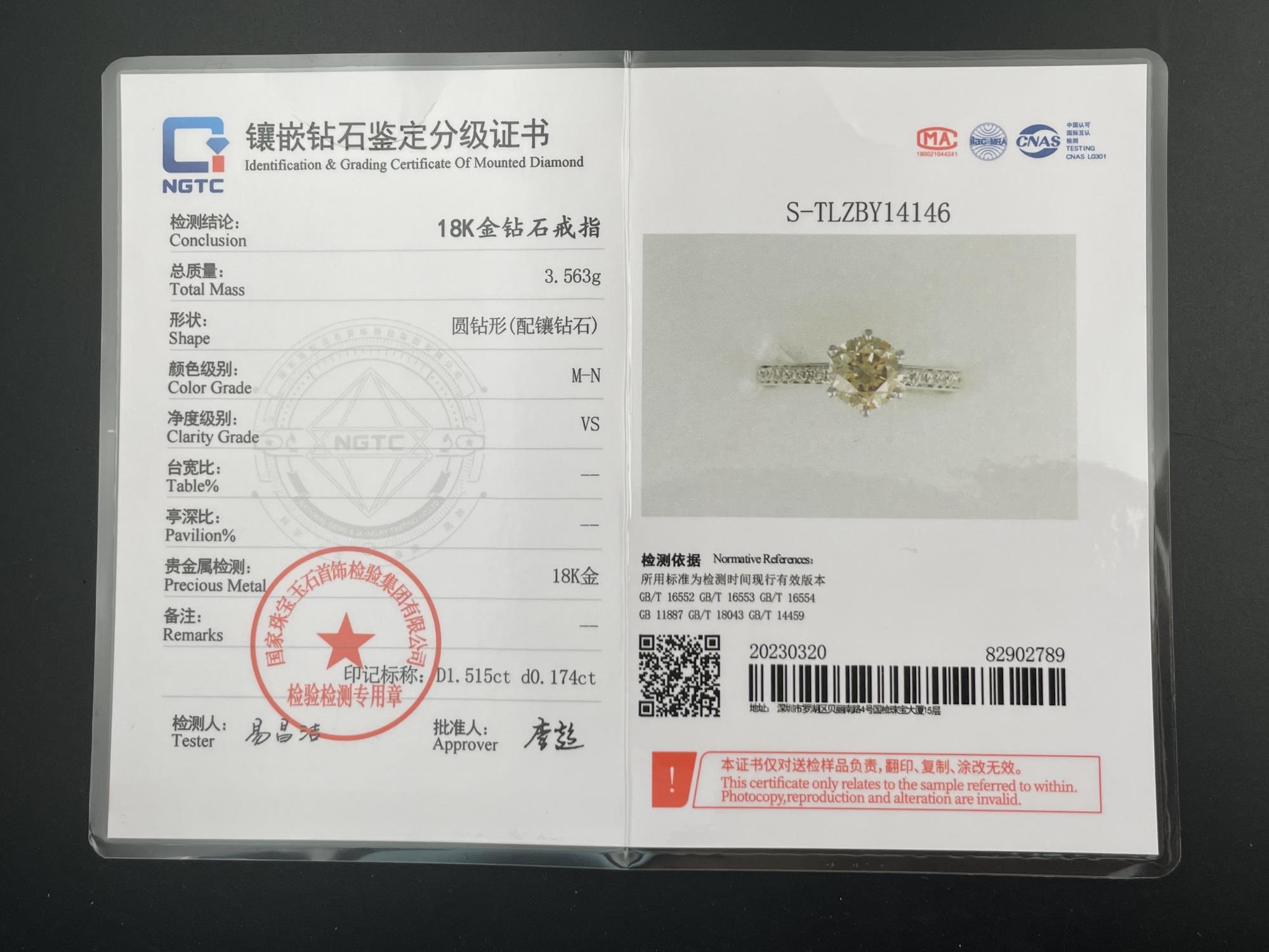 主钻1.515克拉MN色VS净度圆形钻 特价5.5W国检NGTC524146