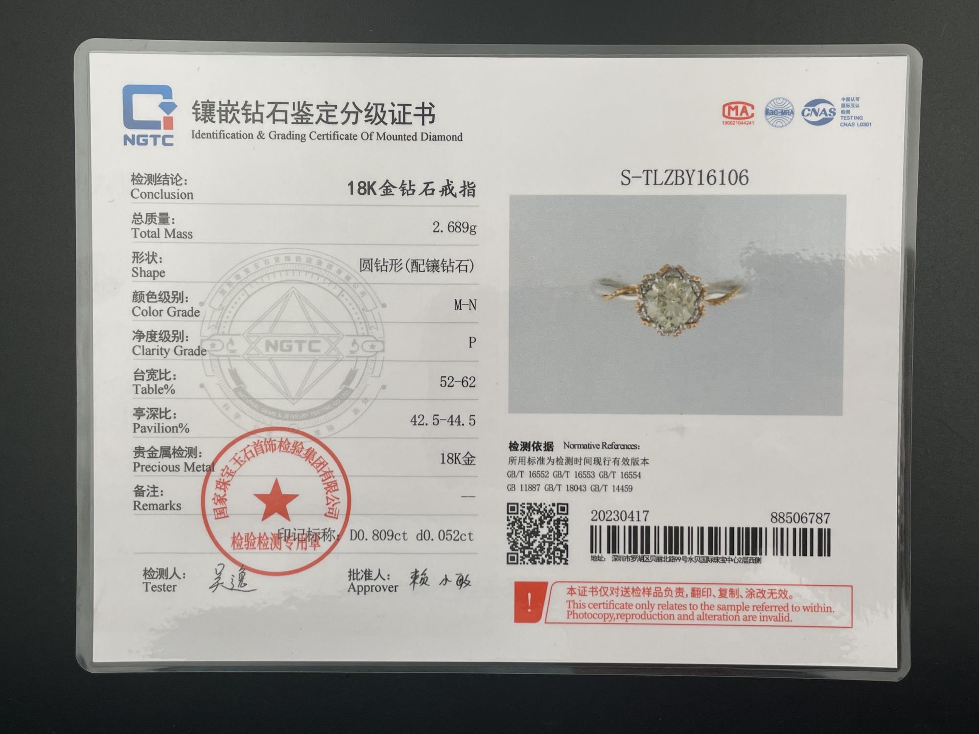 主钻80.9分MN色P净度圆形钻 特价2W国检NGTC808606