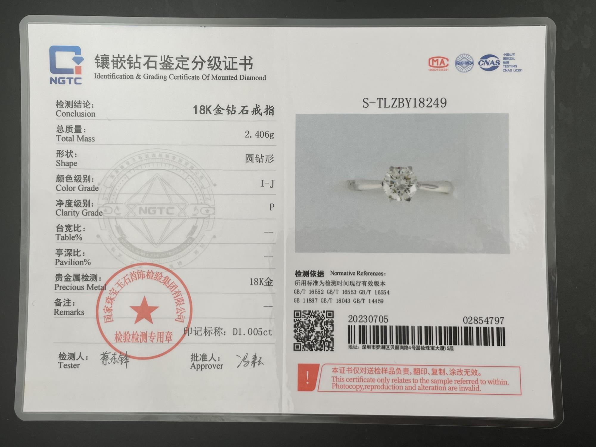 主钻1.005克拉IJ色P净度圆形钻 特价3.67W国检NGTC048249
