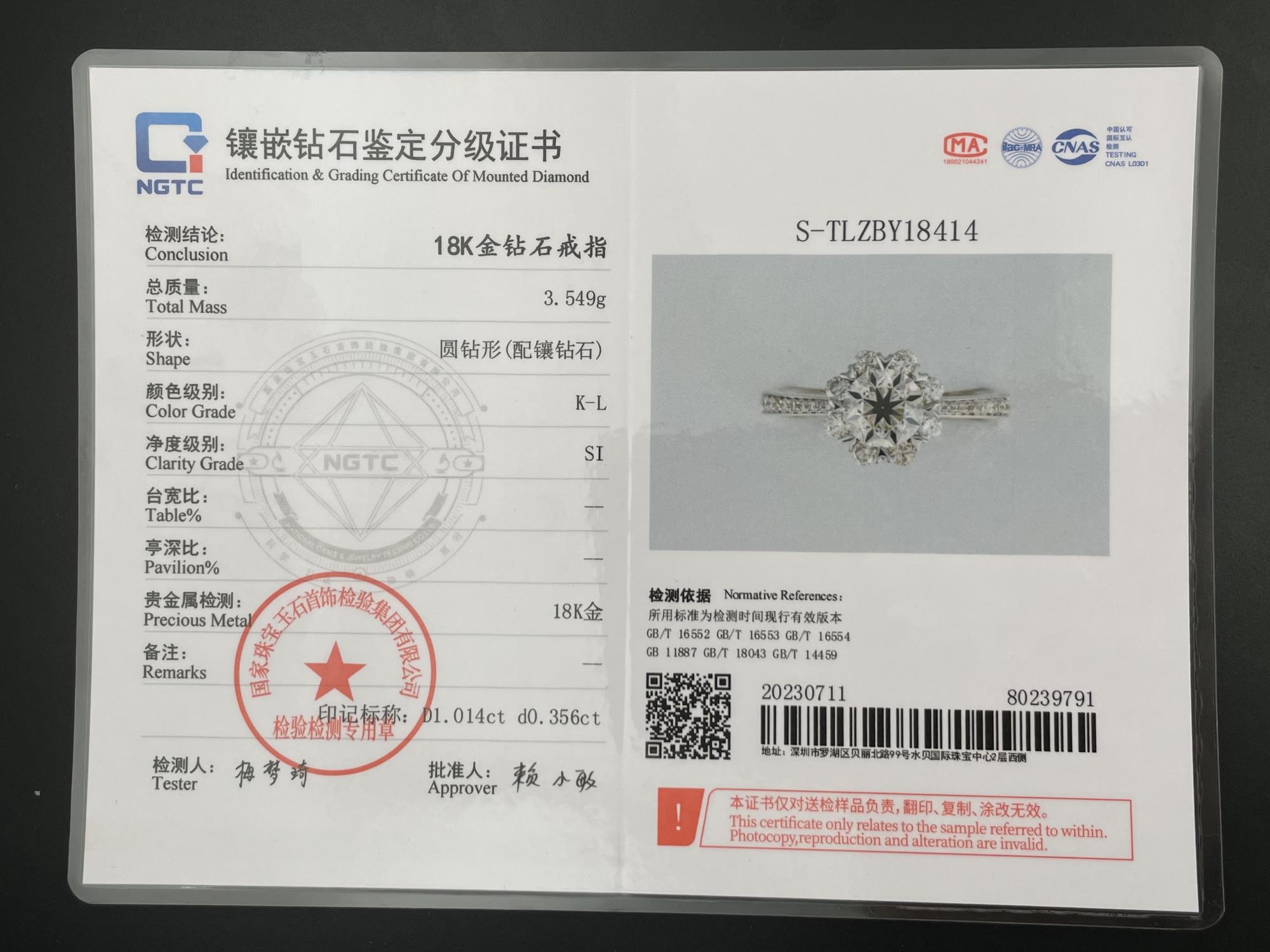 主钻1.014克拉KL色SI净度圆形钻 特价3.5W国检NGTC828414