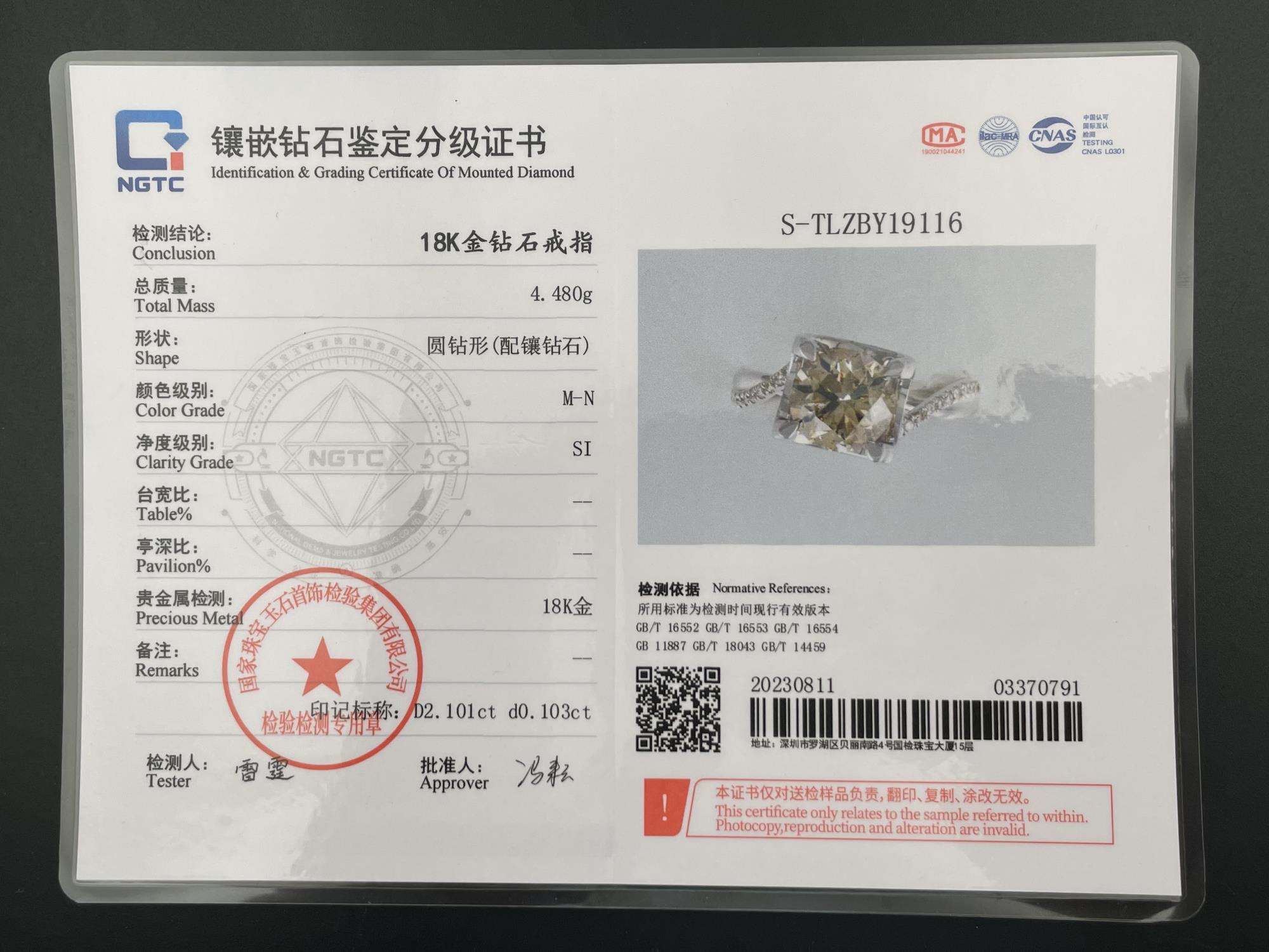 主钻2.101克拉MN色SI净度圆形钻 特价5.84W国检NGTC579116