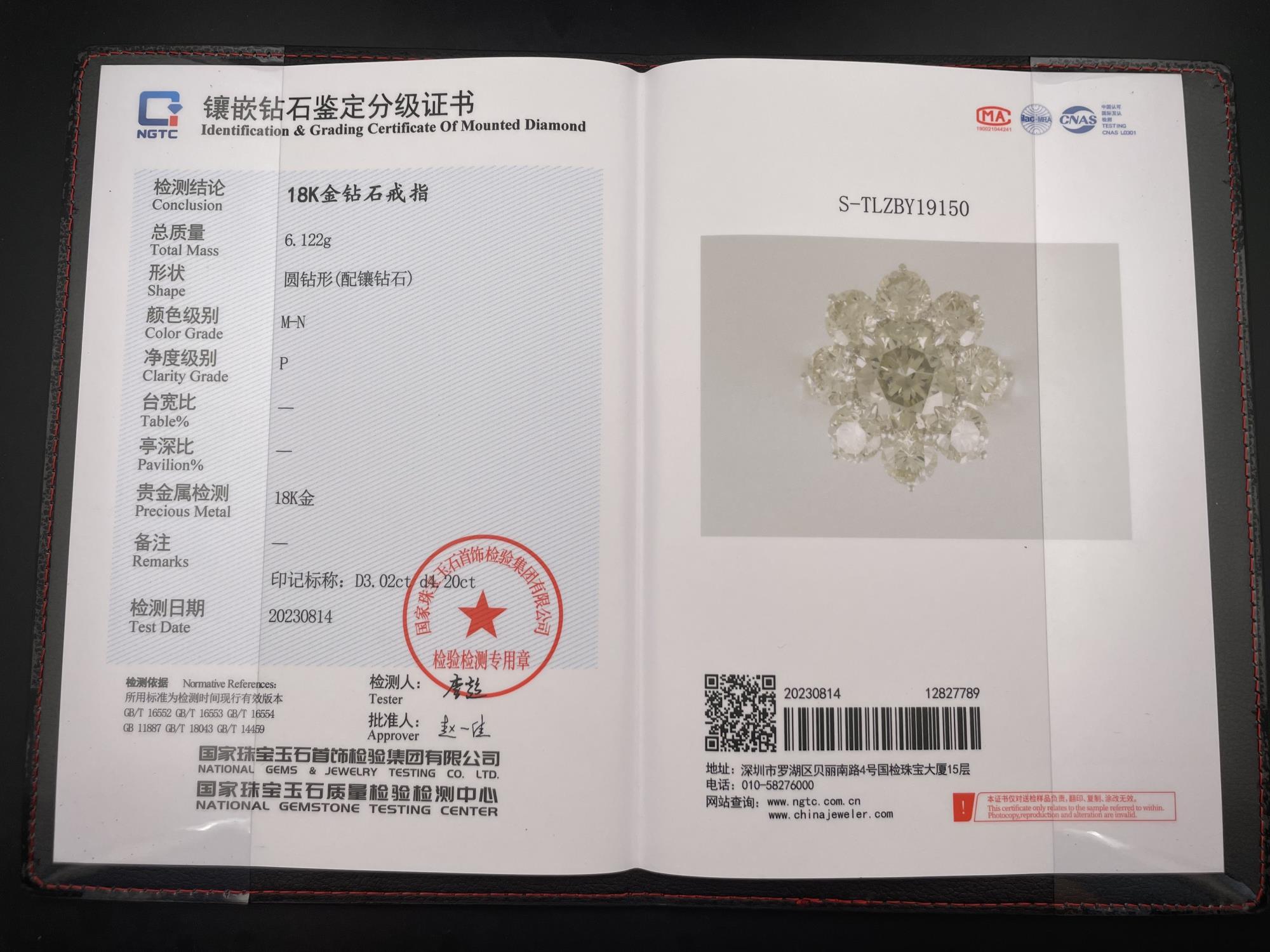 主钻3.02克拉MN色P净度圆形钻 特价16.34W国检NGTC919150