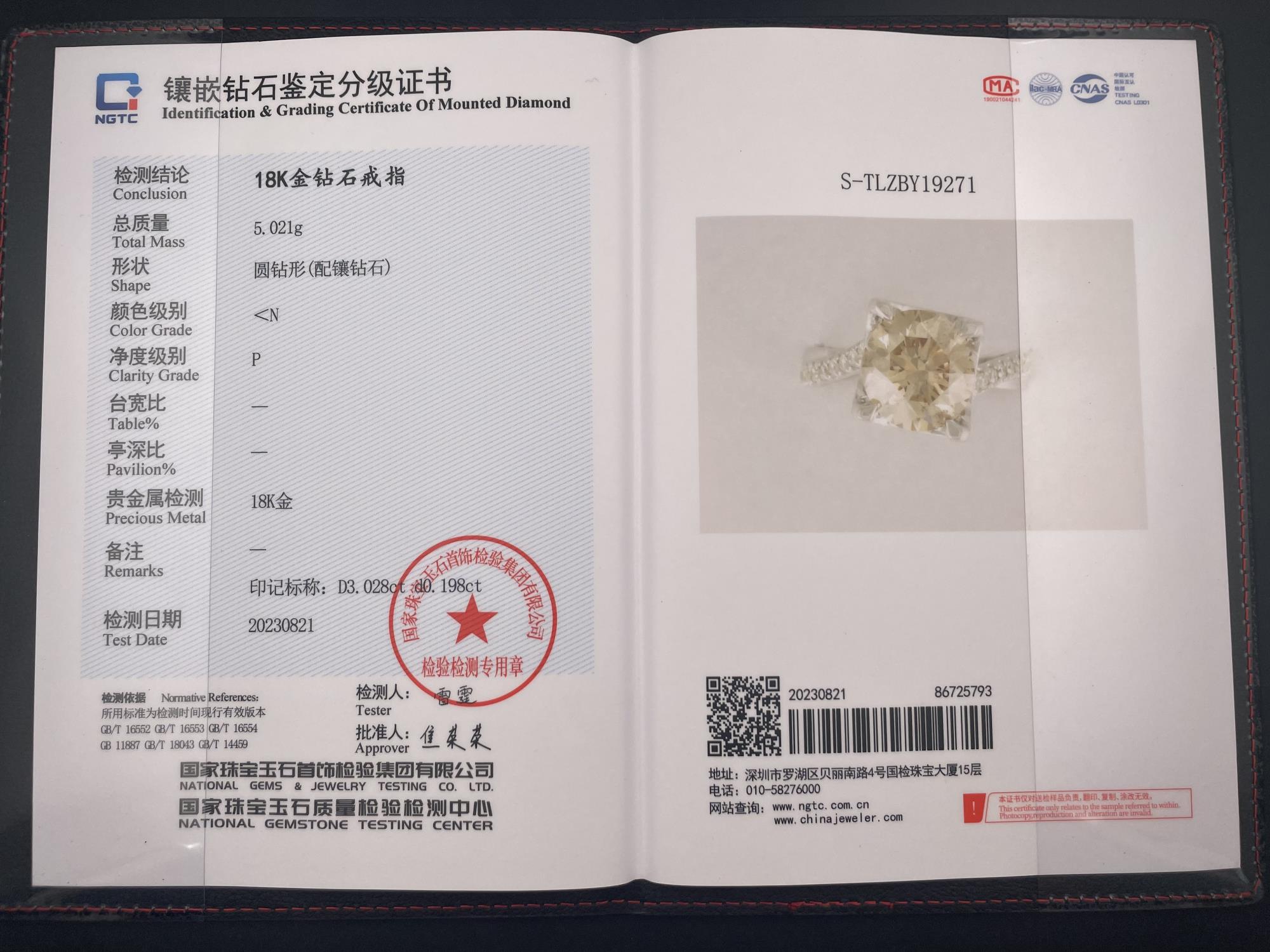 主钻3.028克拉小N色P净度圆形钻 特价11.47W国检NGTC579271