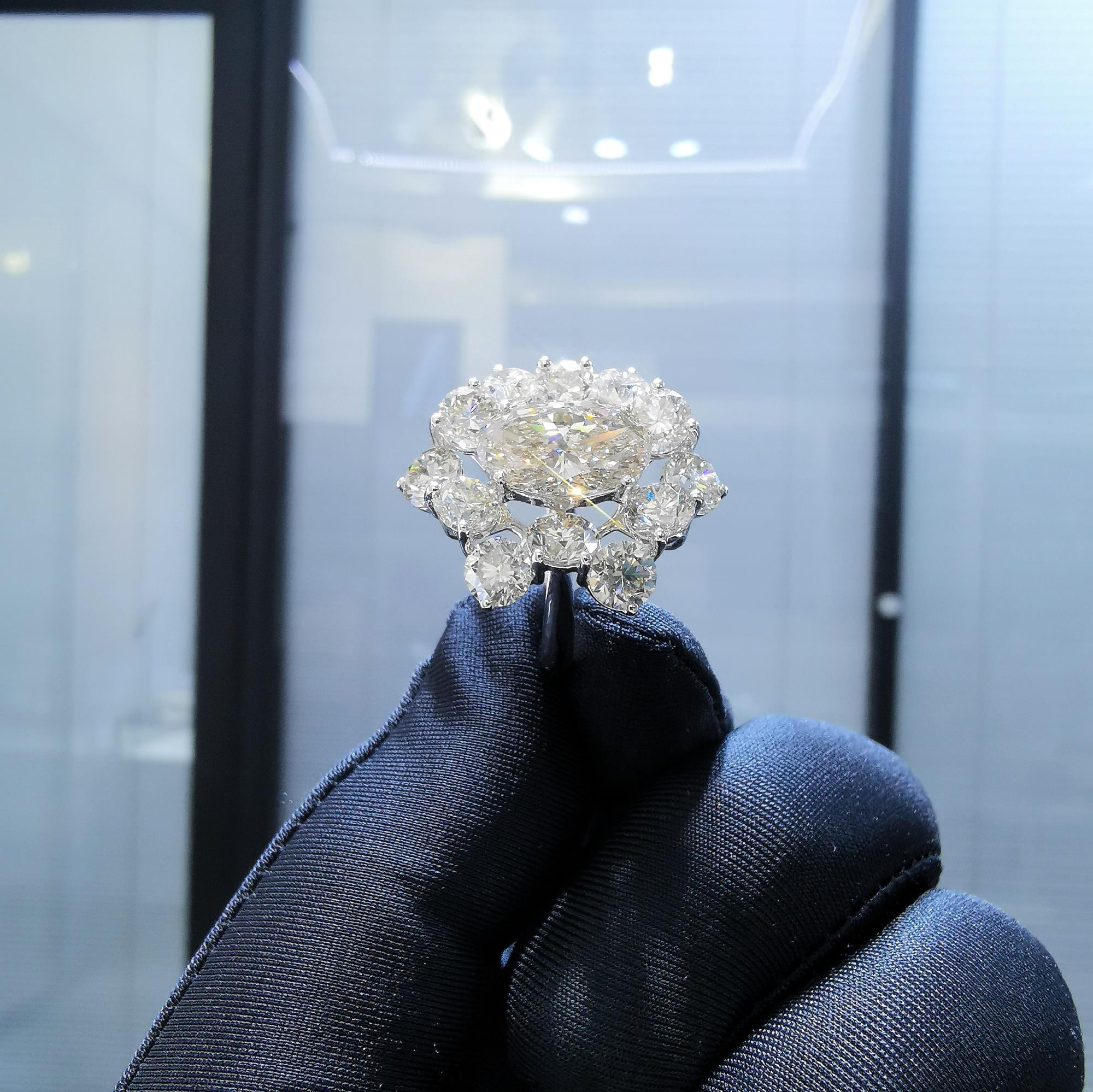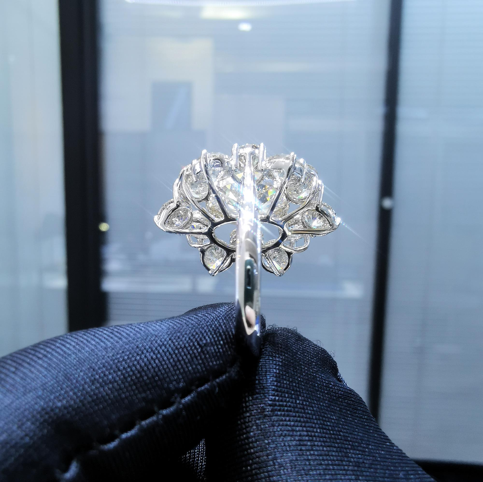 18K白金,主钻石3克拉副钻石0.5克拉每粒