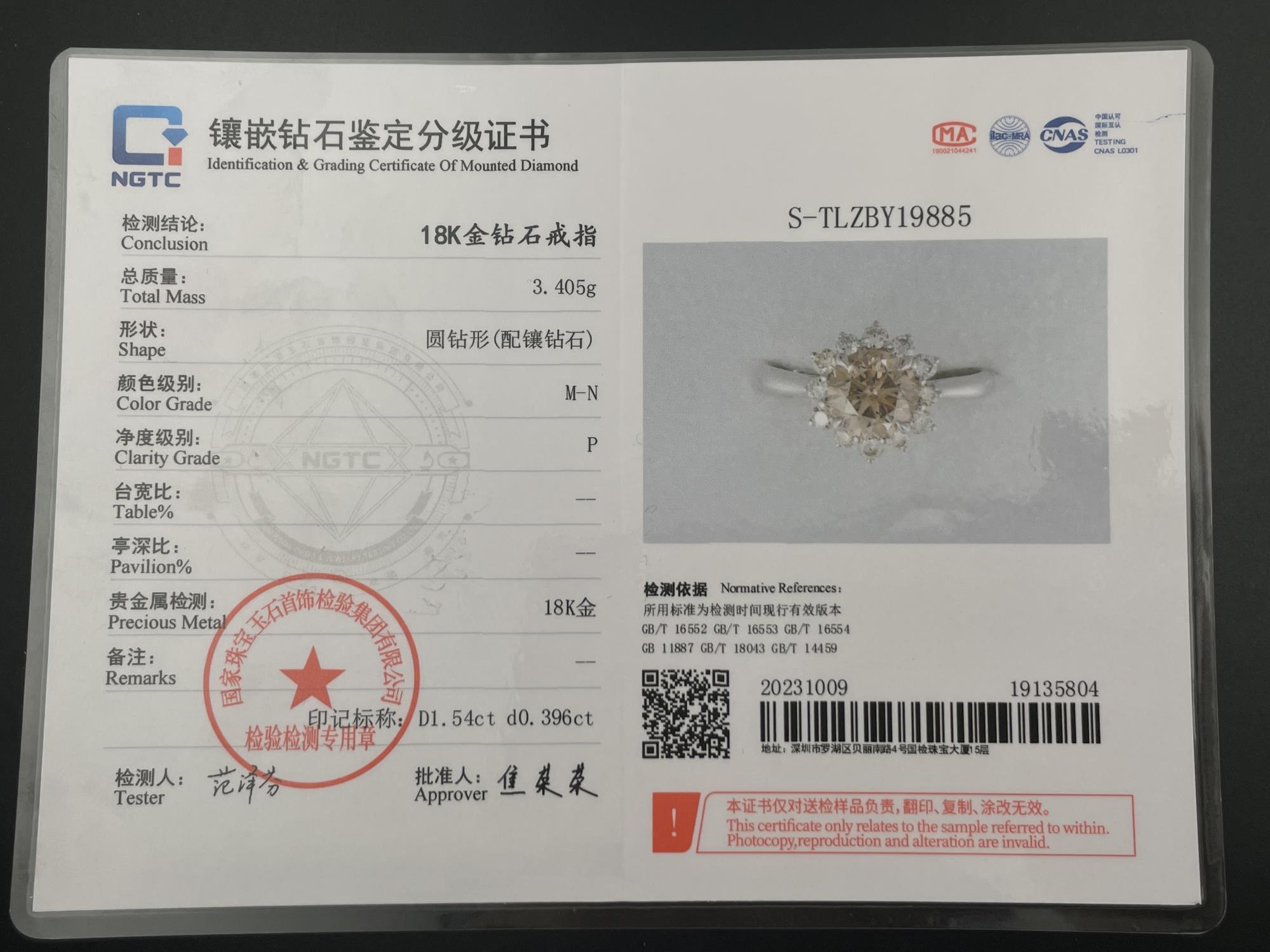 主钻1.54克拉MN色P净度圆形钻 特价3.34W国检NGTC839885
