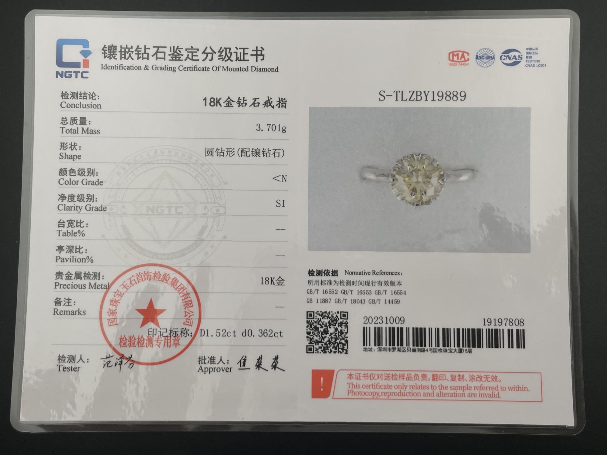 主钻1.52克拉小N色SI净度圆形钻 特价3.67W国检NGTC849889