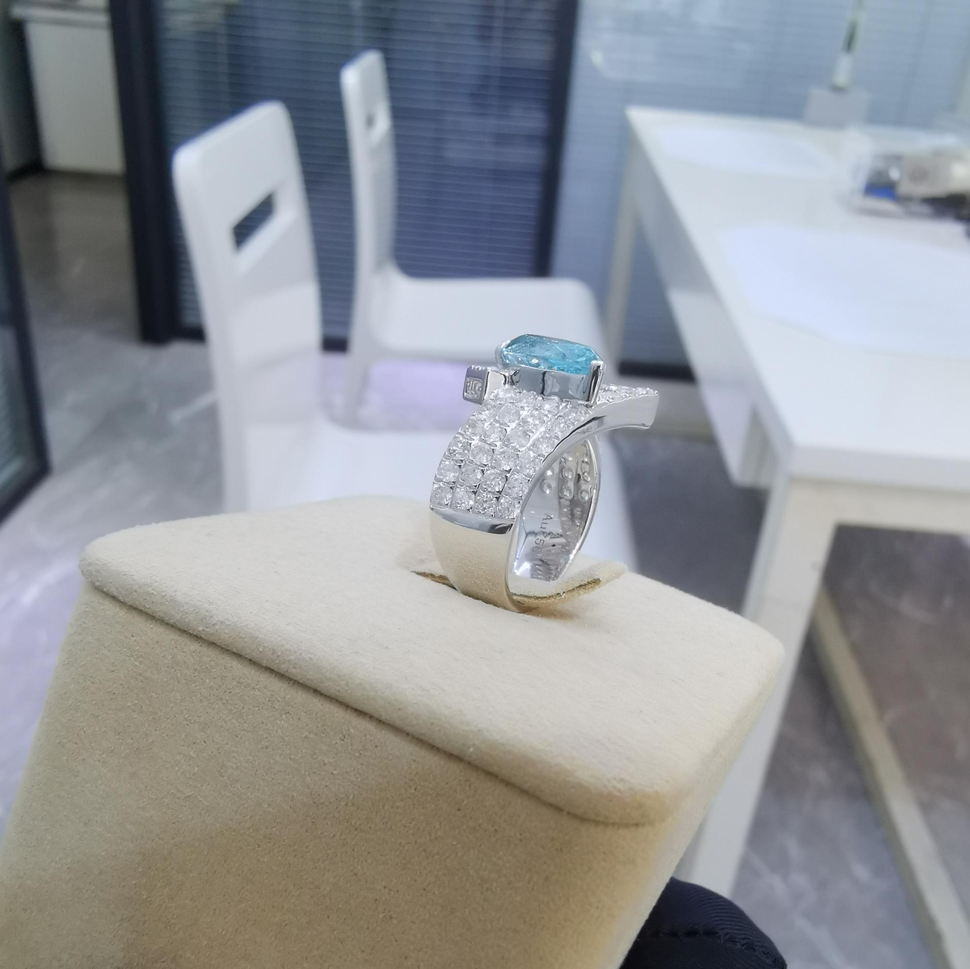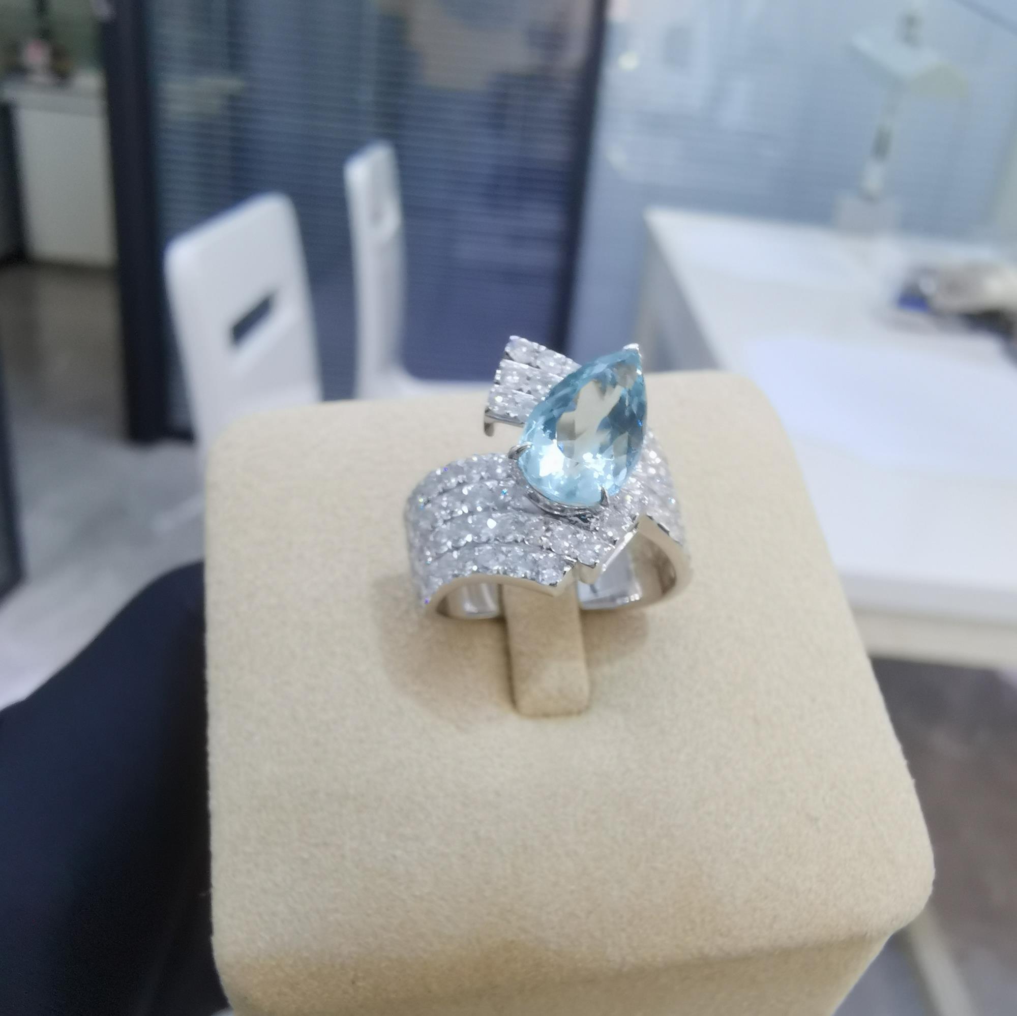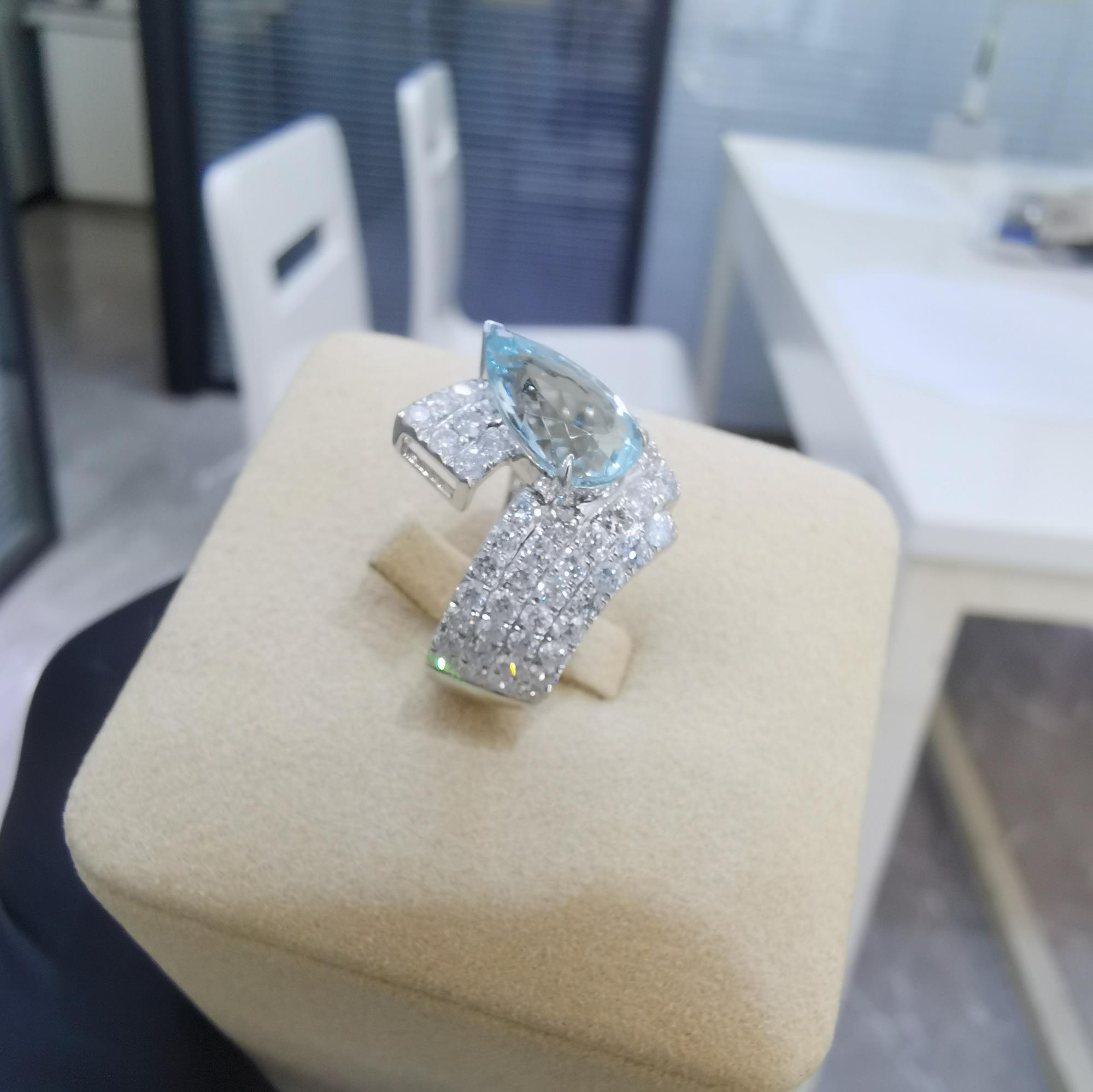 主石:水滴形海蓝宝石2.47克拉 副石:钻石1.738克拉