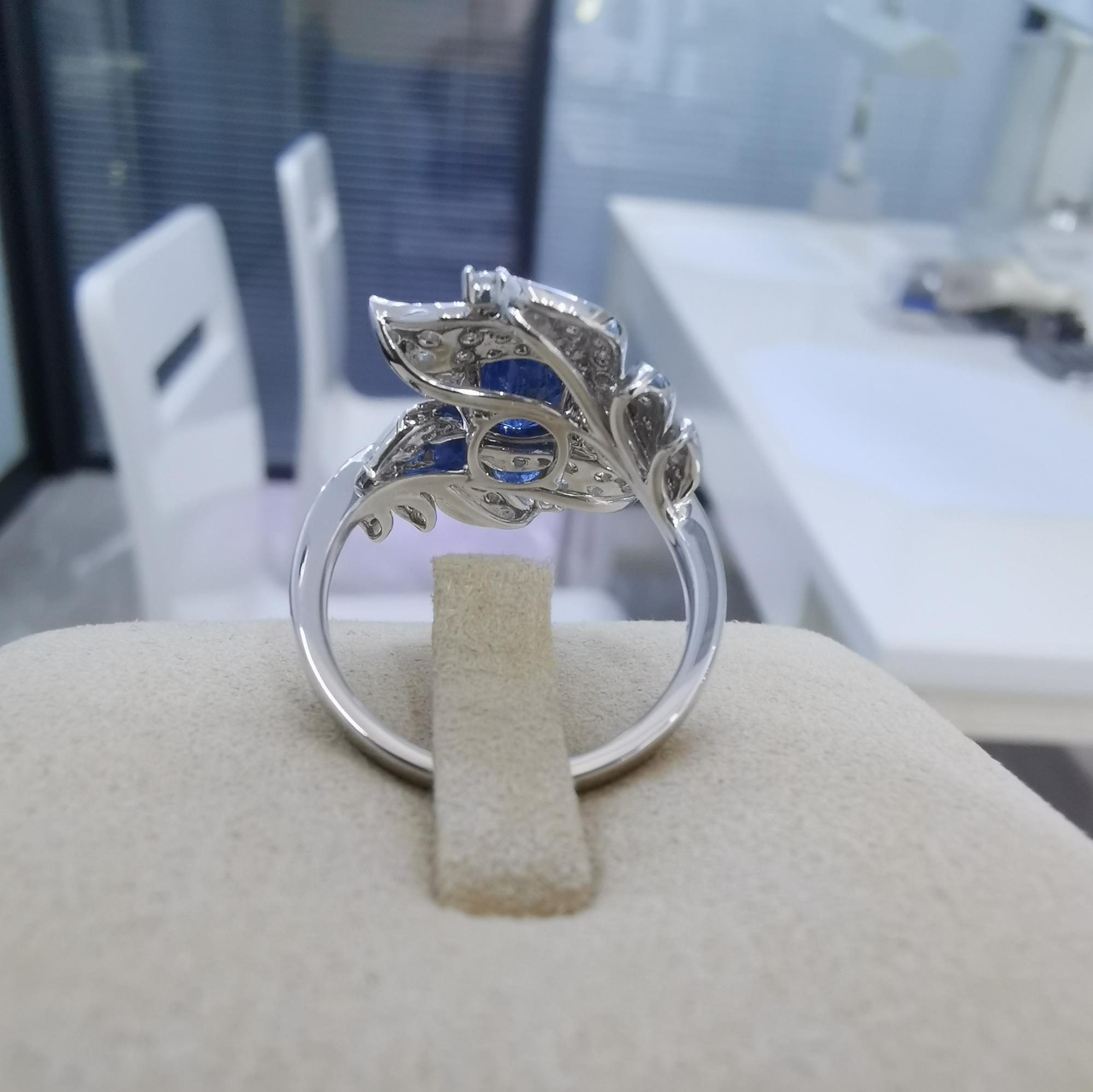 主石:椭圆形蓝宝石1.90克拉 副石:钻石0.445克拉