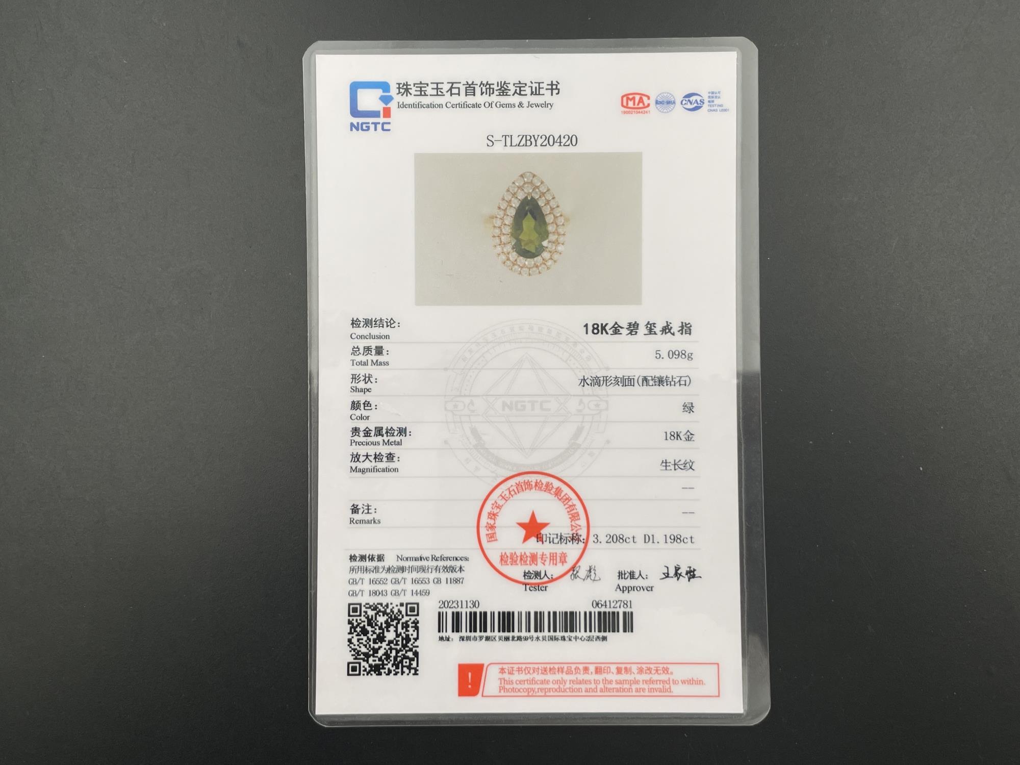 主石:水滴形碧玺3.208克拉 副石:钻石1.198克拉 特价3.3W国检NGTC651720
