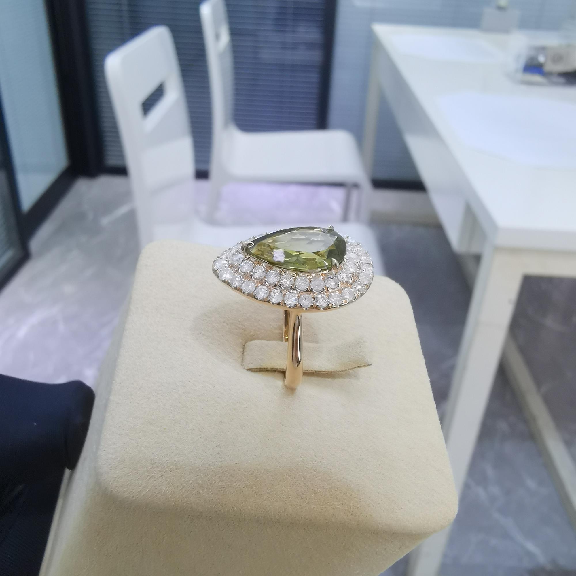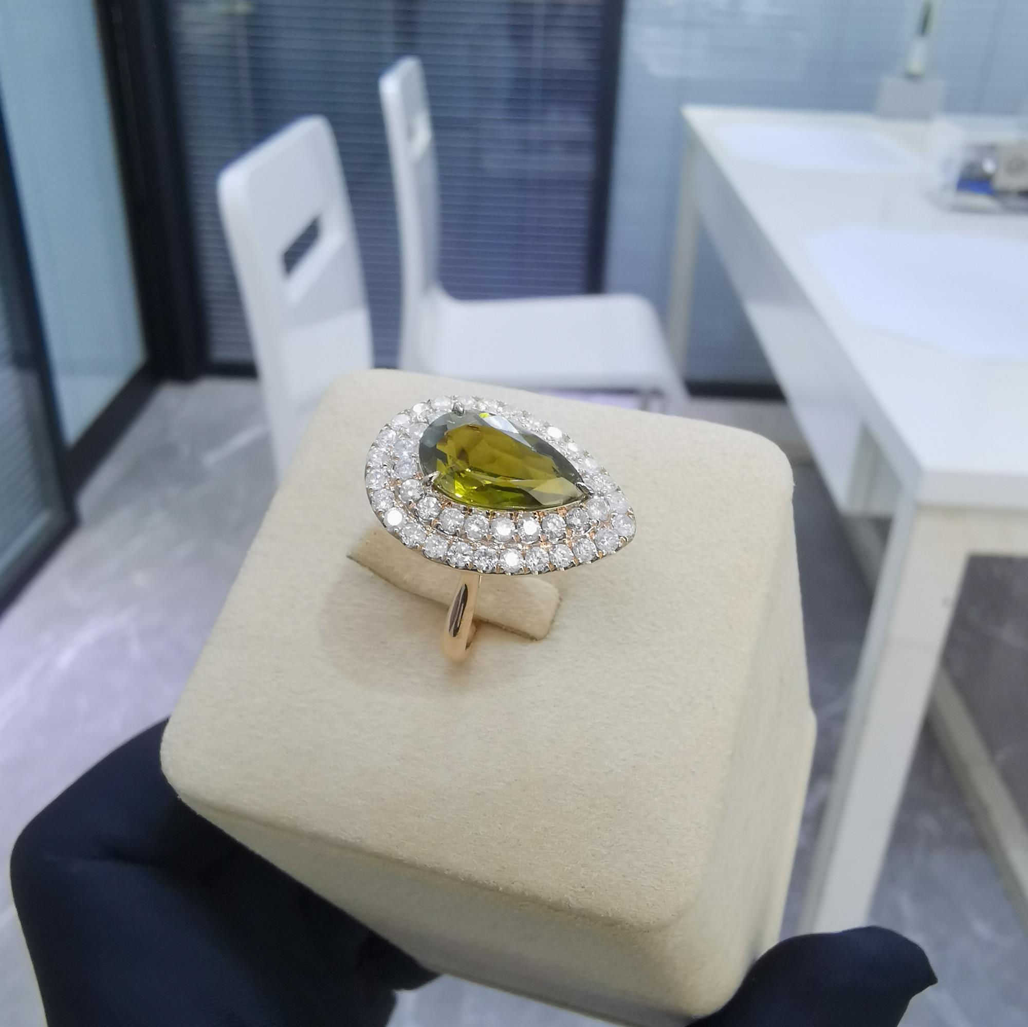 主石:水滴形碧玺3.208克拉 副石:钻石1.198克拉
